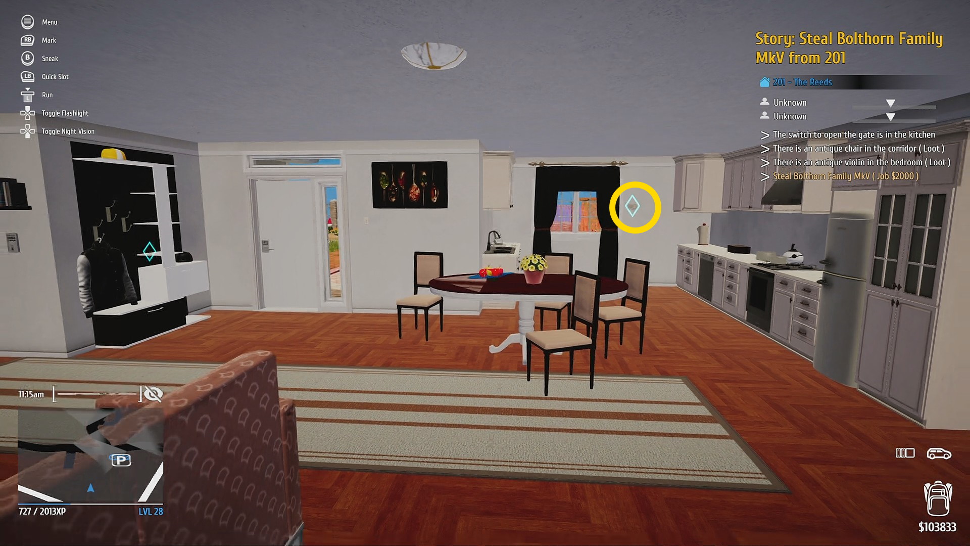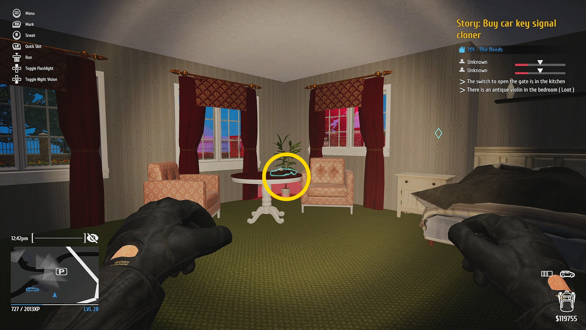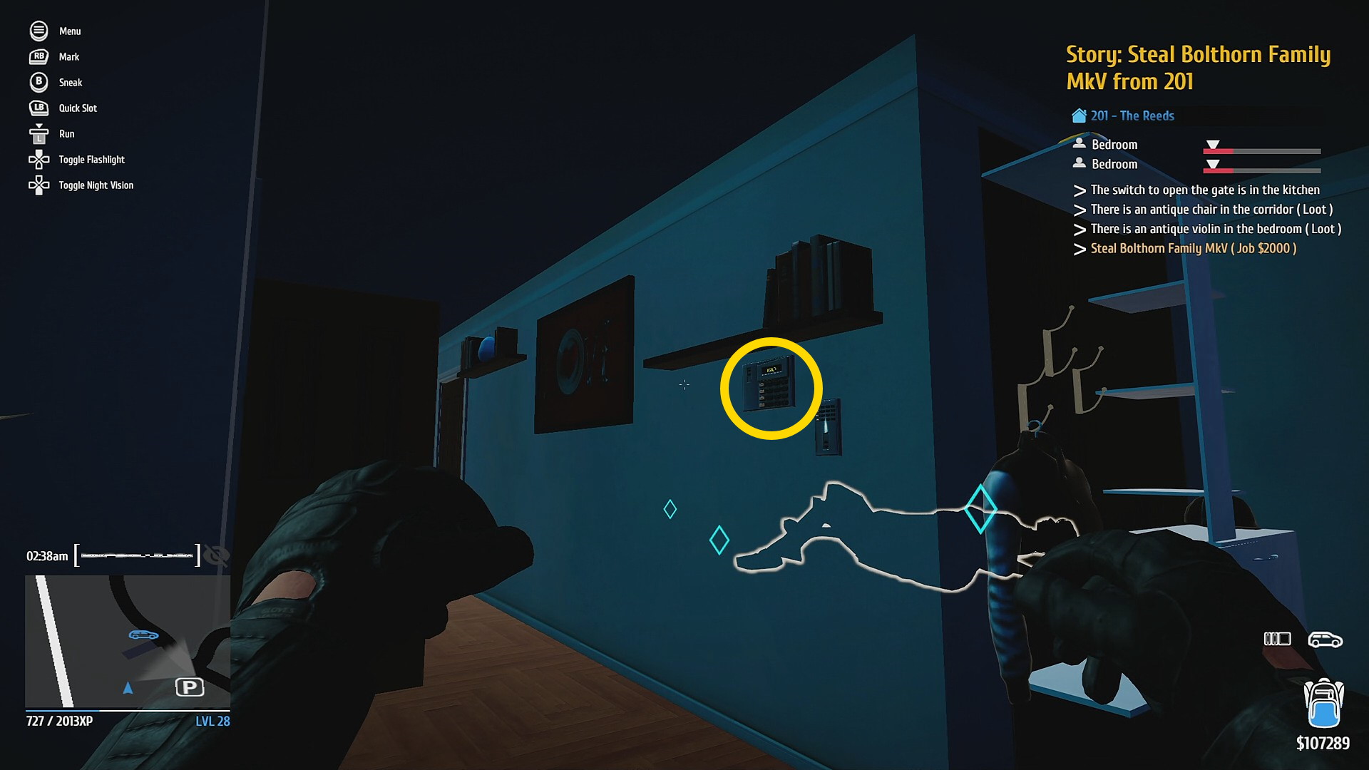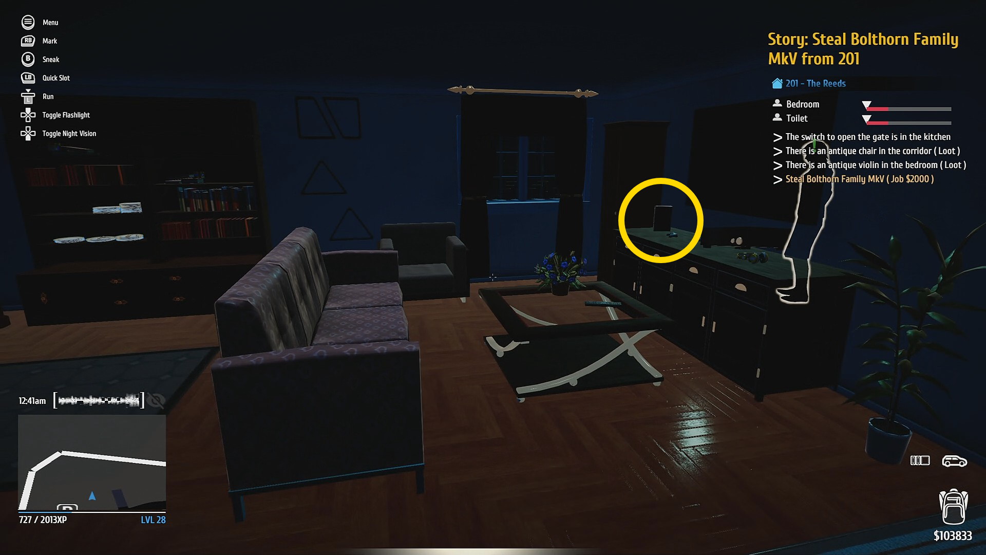 - 中に入って右前方、大きなテレビのところにゲーム機があるので回収 ⇒ (ゲーム機を盗む:4/5)