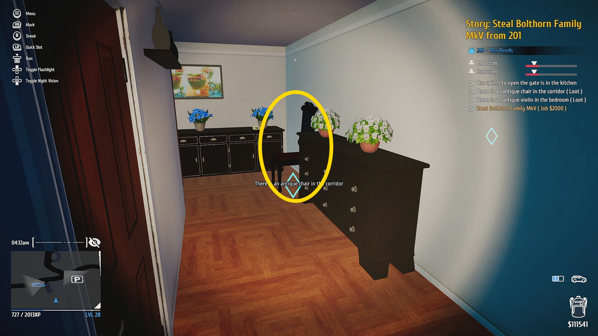 - 奥の廊下にはアンティーク物の椅子が置いてあるので回収 (トランクに積む)