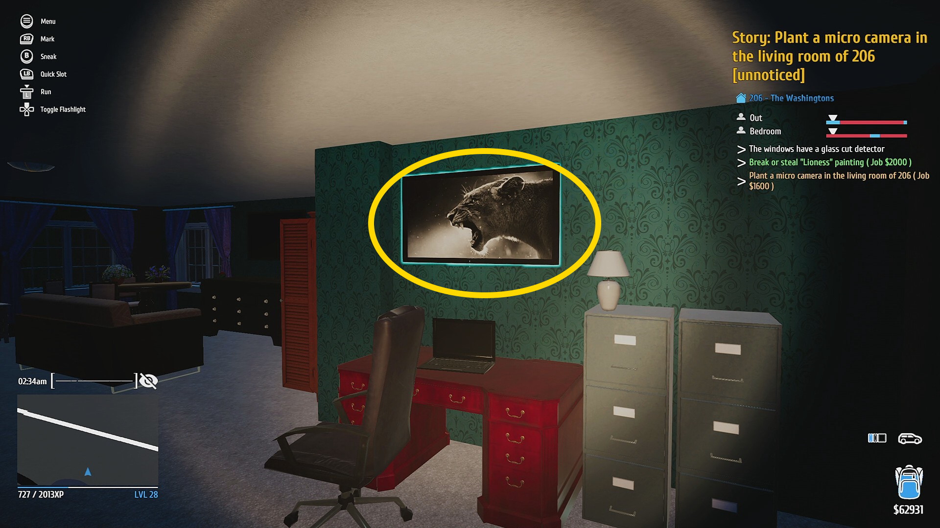 • 入ってすぐ目の前の壁にある絵画 “Lioness” を回収 (依頼)