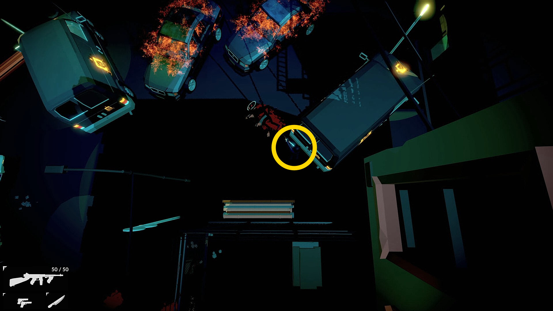 • 奥に進みながら、誤爆を避けるために停車している車はできるだけ破壊しておくことを推奨(燃えている車に触れても無問題)