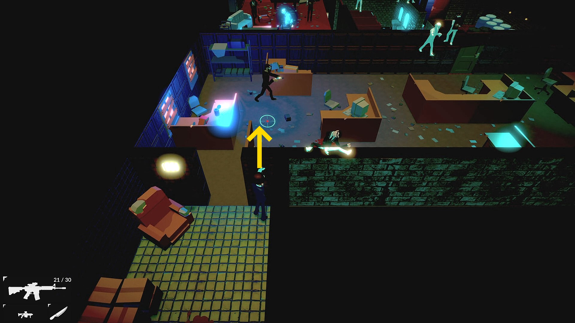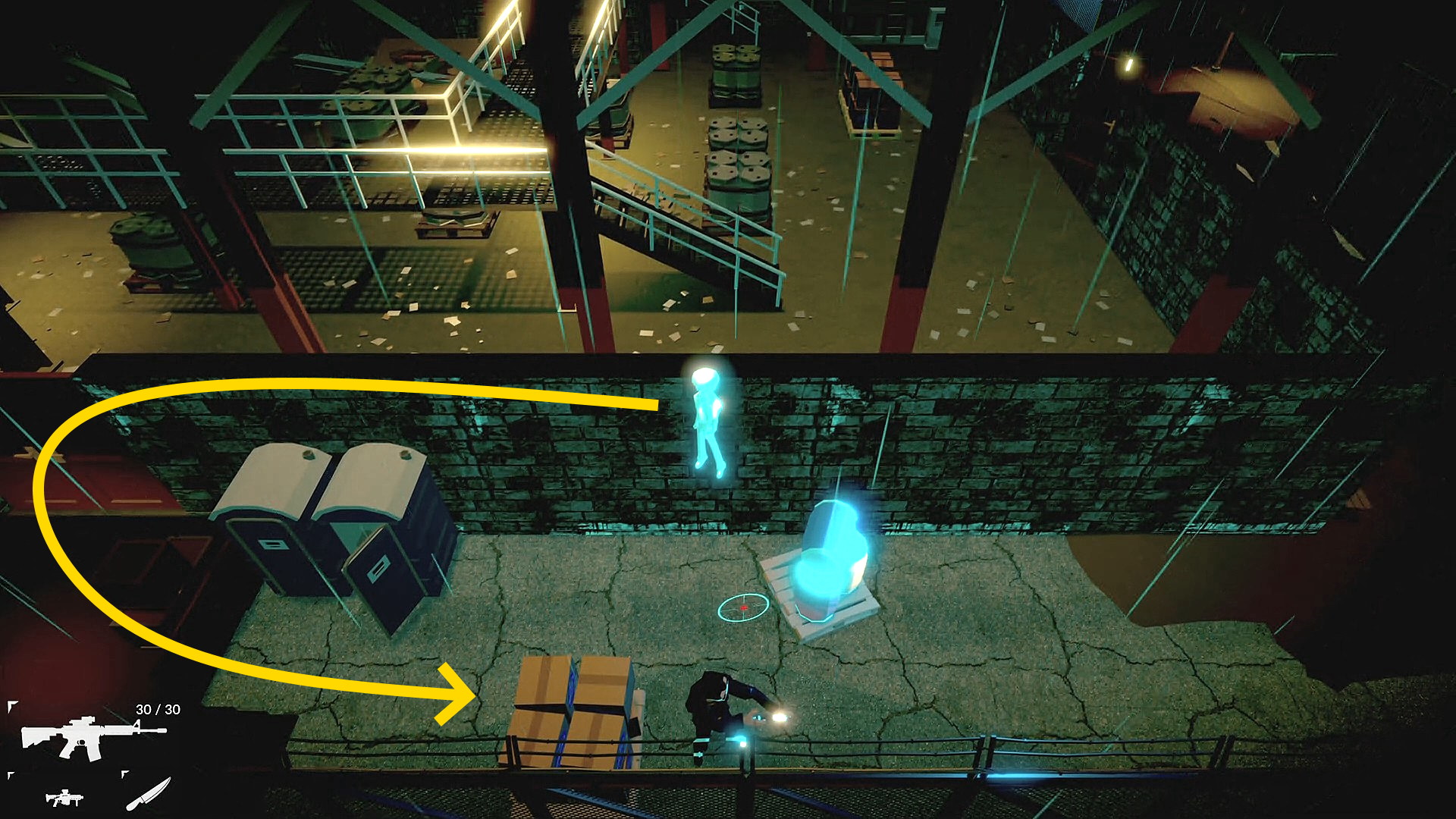 • 壁の向こうの部屋に椅子に座った人質が見える(人質には弾は当たらない)