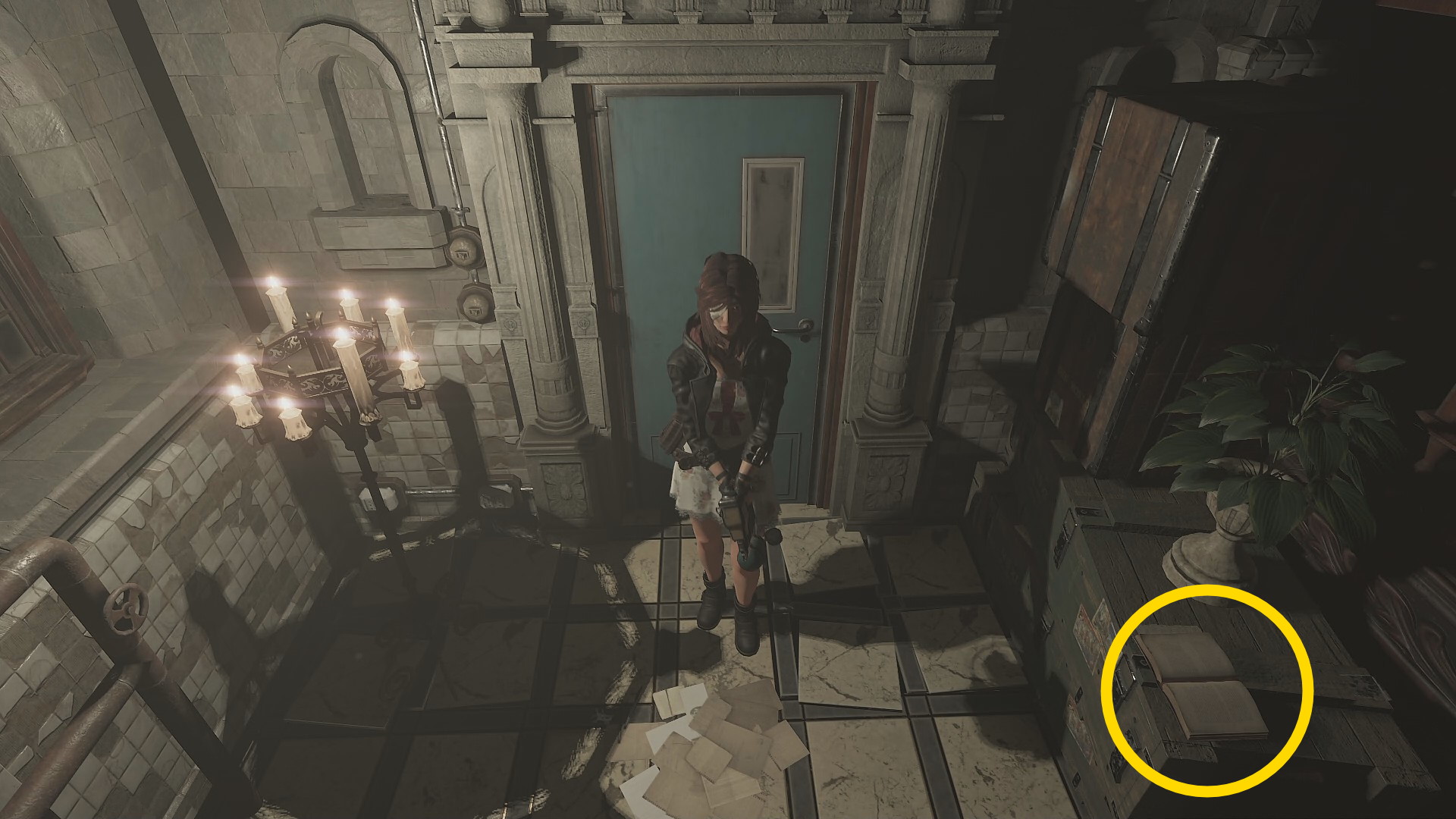 - 廊下に出るドアの右側のロウソクに着火し、クラッチャーをキル
