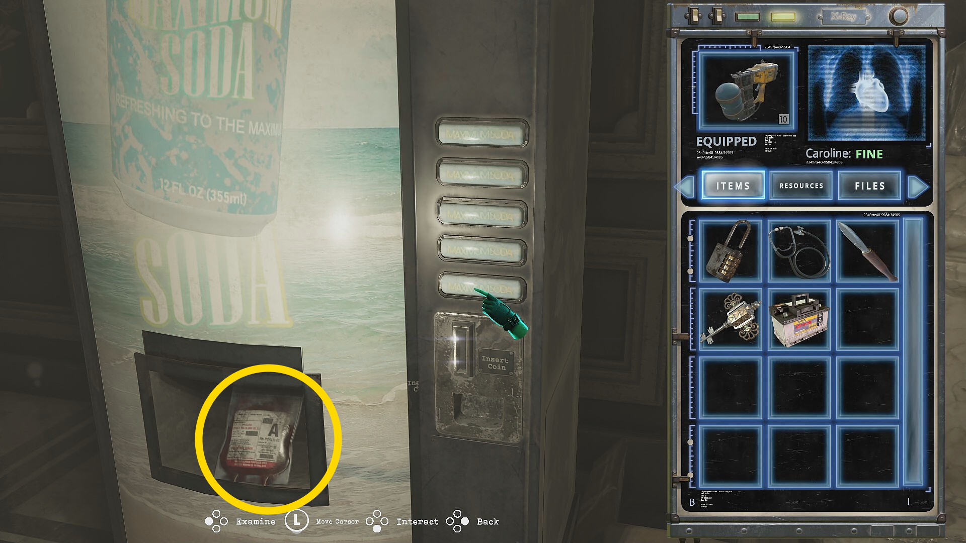 - 5つのボタンがランダムに点滅するミニゲームを5セットクリアすれば Blood Bag(以降、血液バッグ) が出てくる