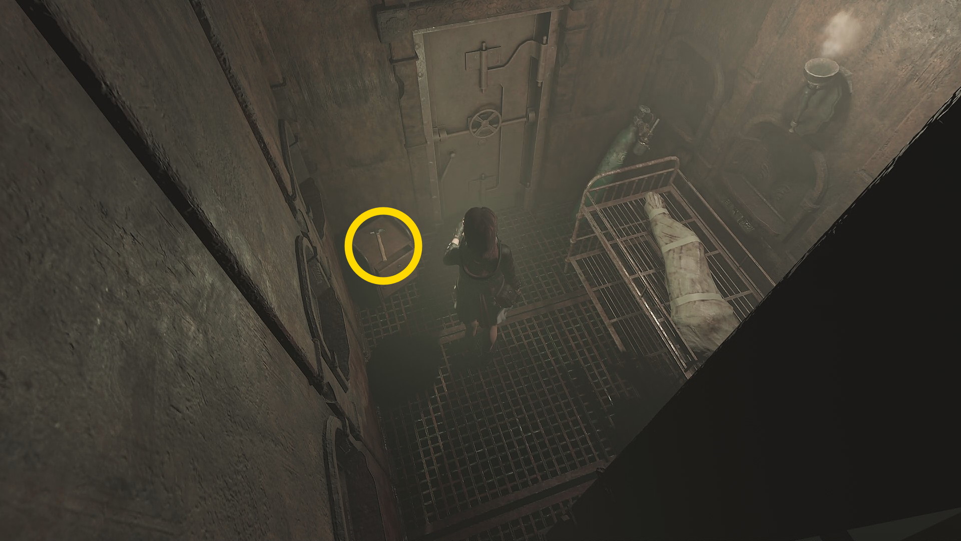 - 左に見える小部屋に入り、Hammer(以降、ハンマー) を回収