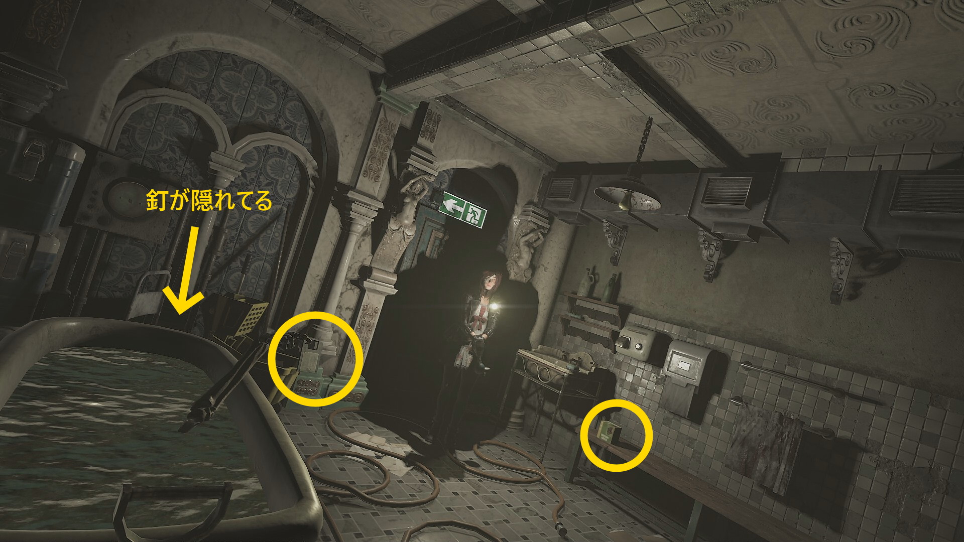 - Bathroom 2A-2B へ戻り、鏡に入る