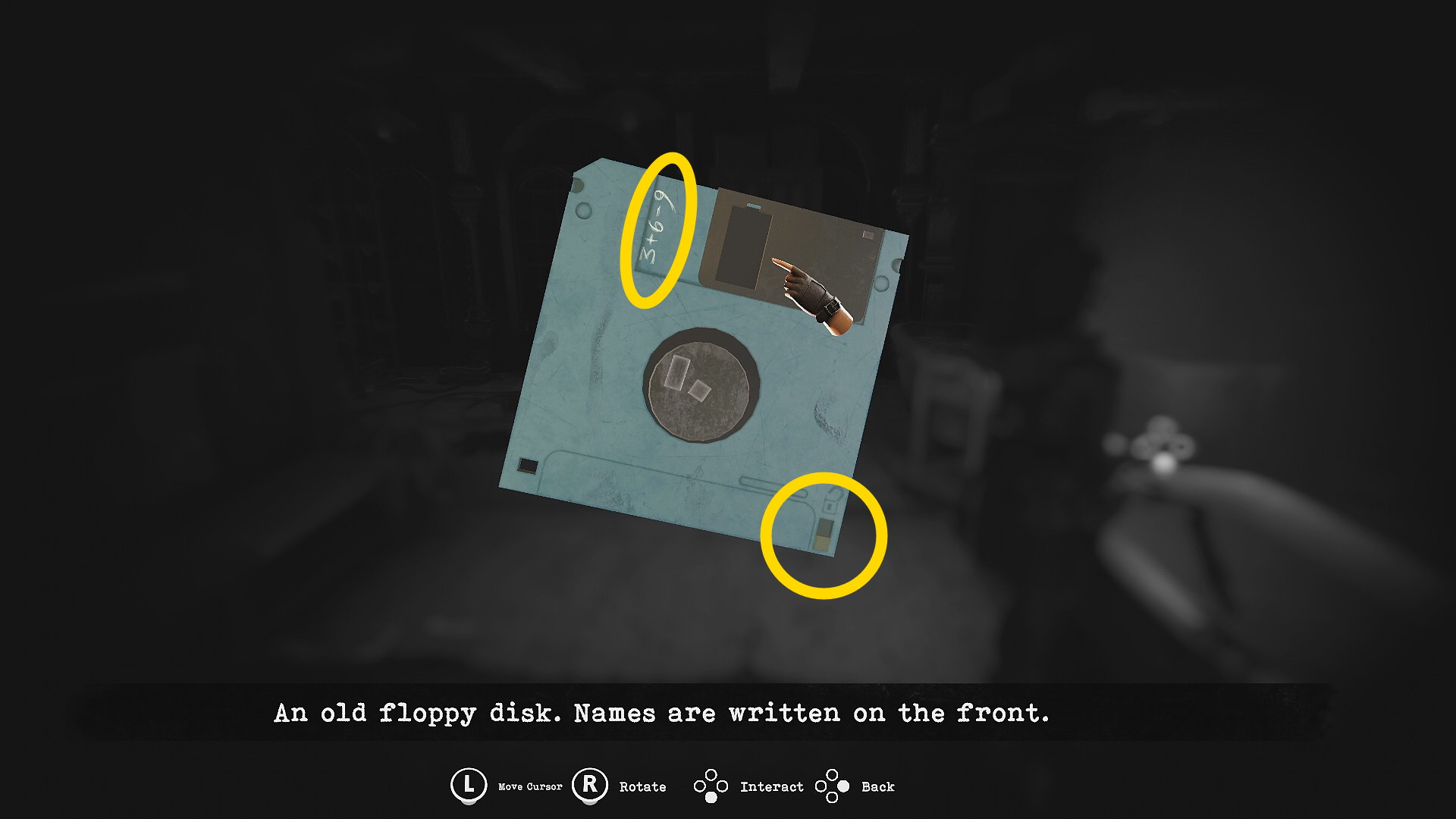 - 左側の浴槽から出ている手から Floppy Disc(以降、フロッピーディスク)