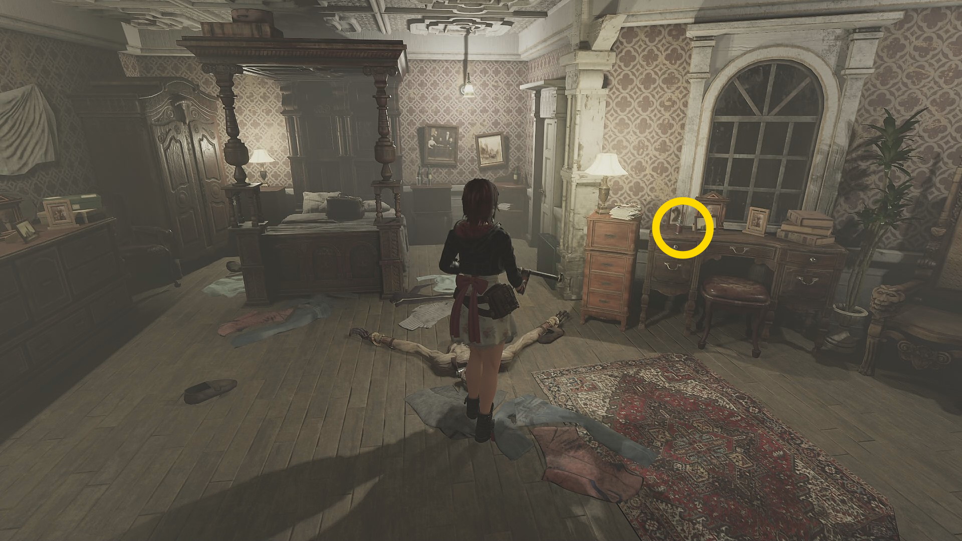 - 窓際の机に近づくと男性の死体がくるり
