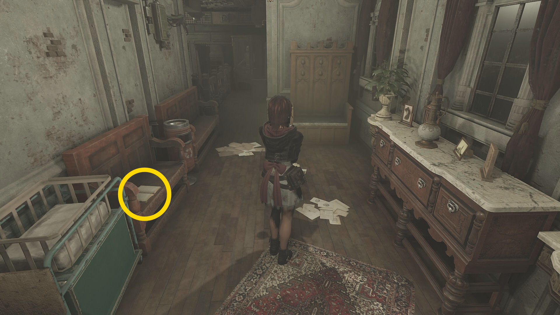 - 画面手前に進むと左側のベンチに マリアの日記(8/8)