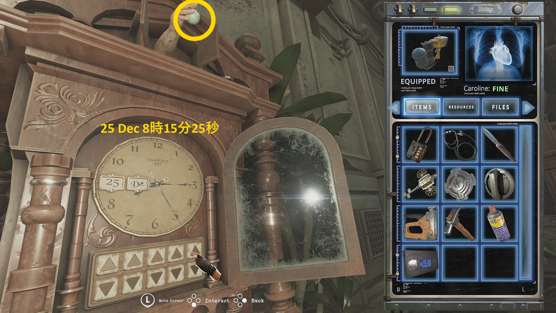 - モルヒネを回収後、古時計が見えるので調べる