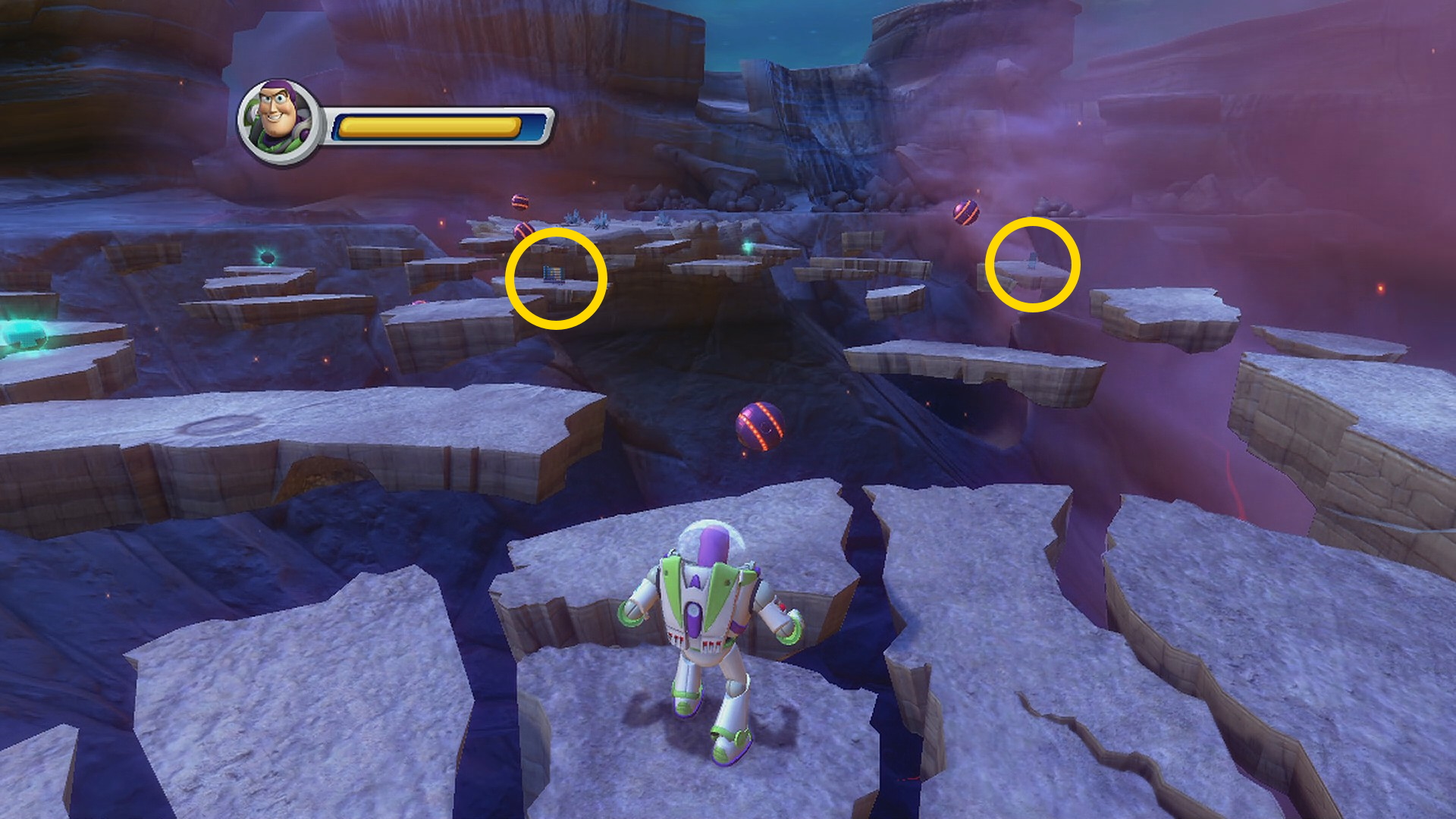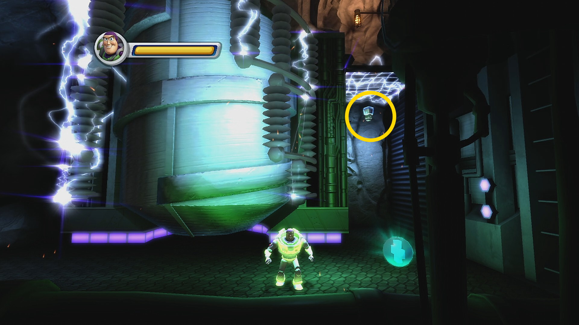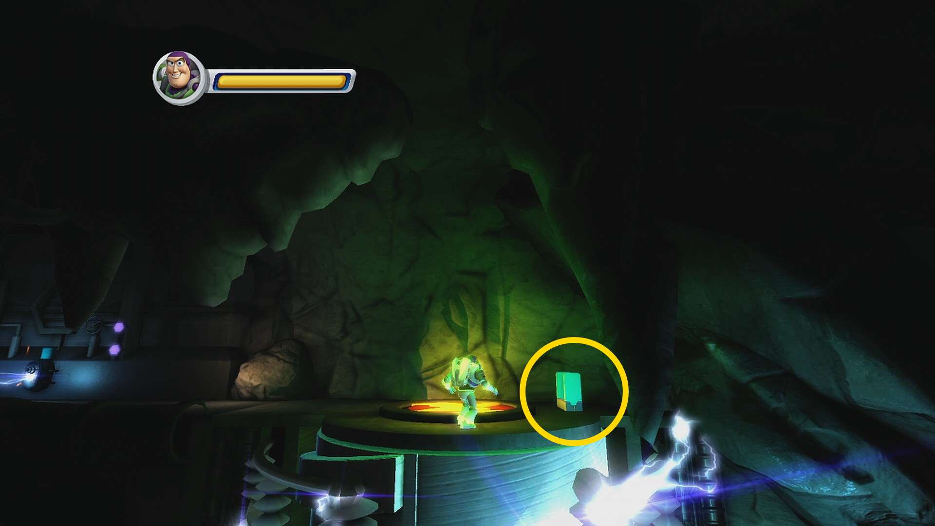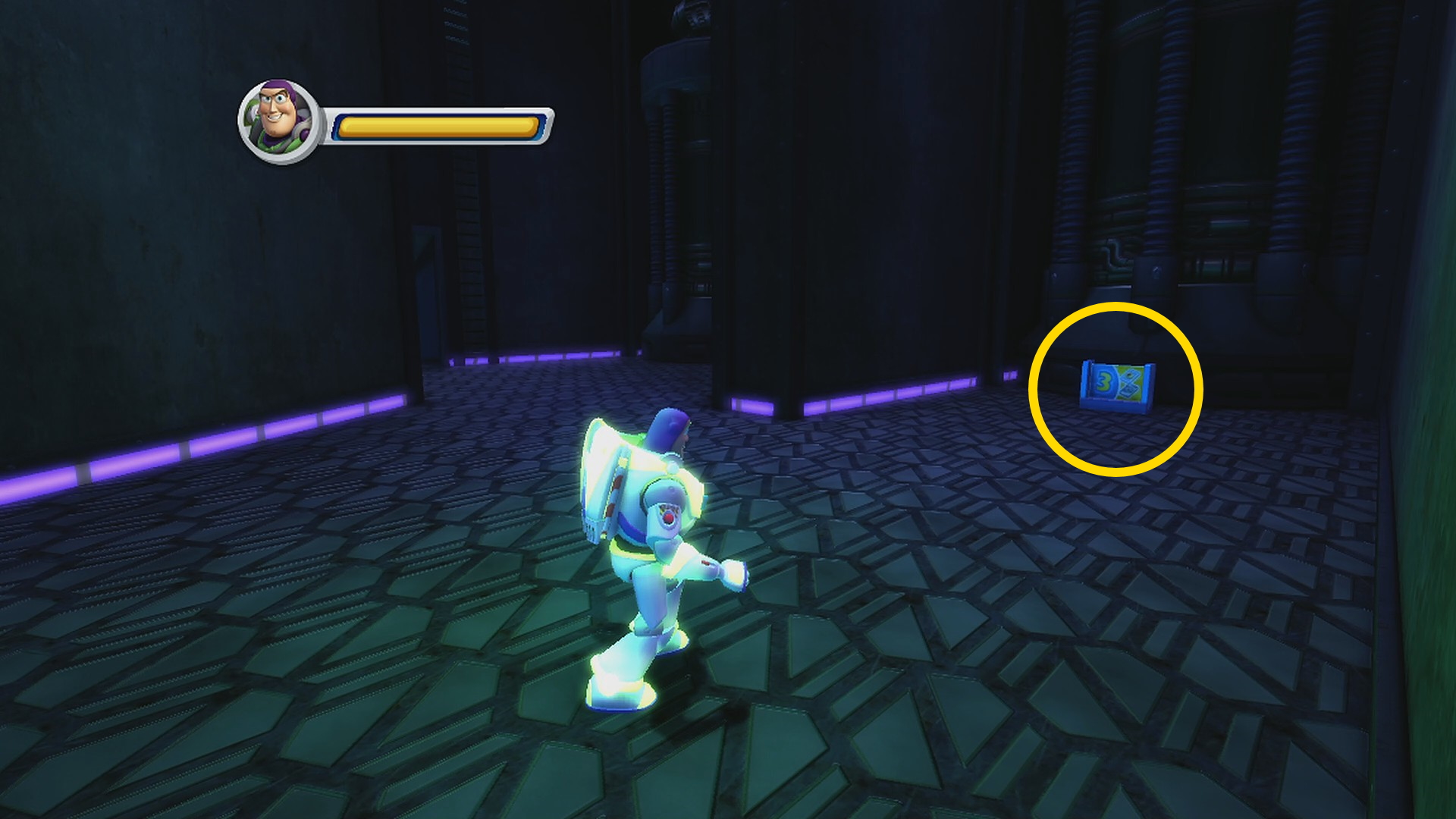 - 下にえぐるようなカメラワークがあったあと、穴をくぐる途中で左に移動すると Star Command Card 1:Buzz Lightyear (3/8) (動画でいうと2分44秒あたり)