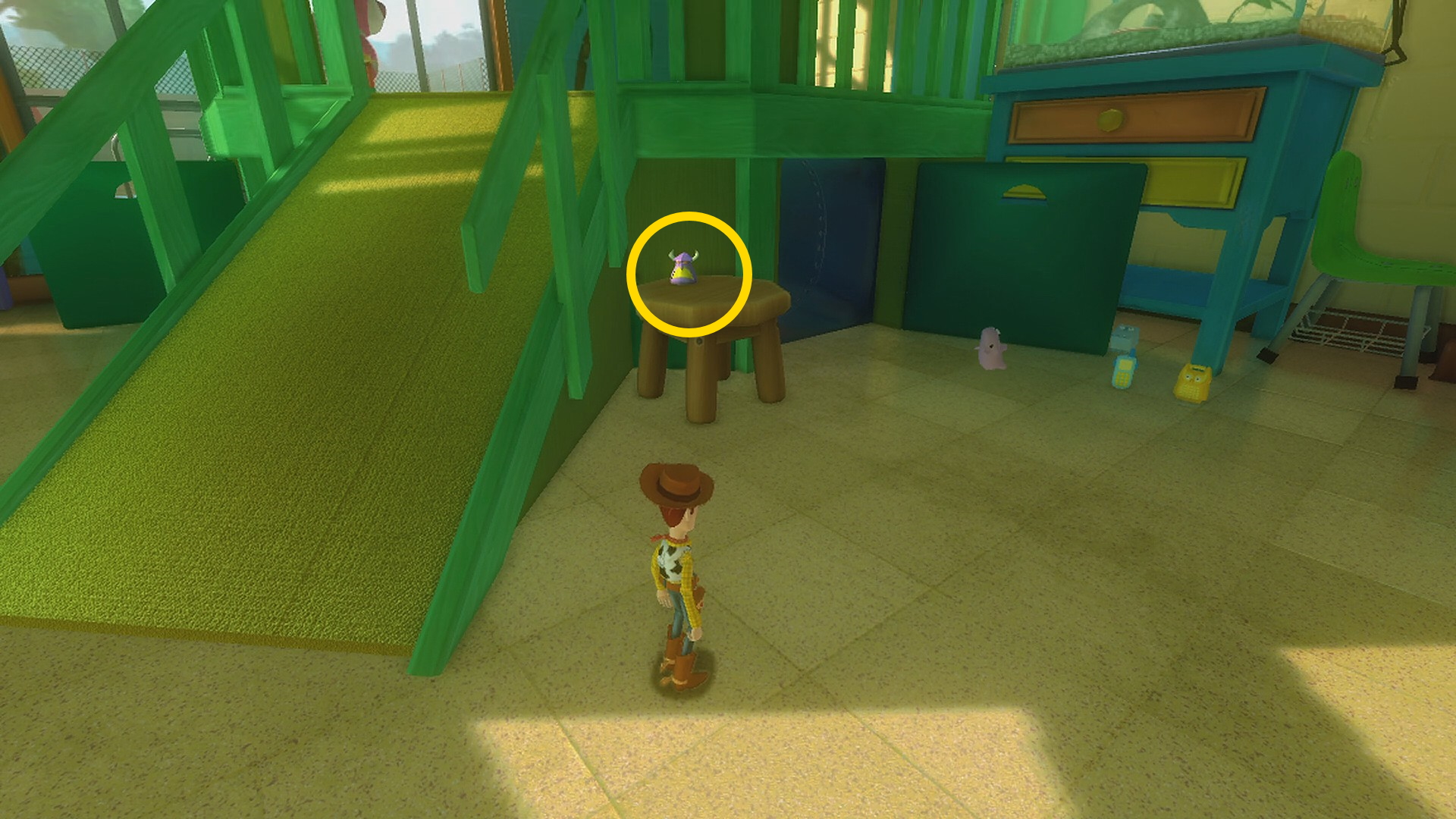 - ラジコンカーに乗ったウッディを操作して、2分以内にブロックを10個破壊するとクリア後に Star Command Card 10:Laser (8/8) がもらえる (初見でも10個破壊は難しくない)