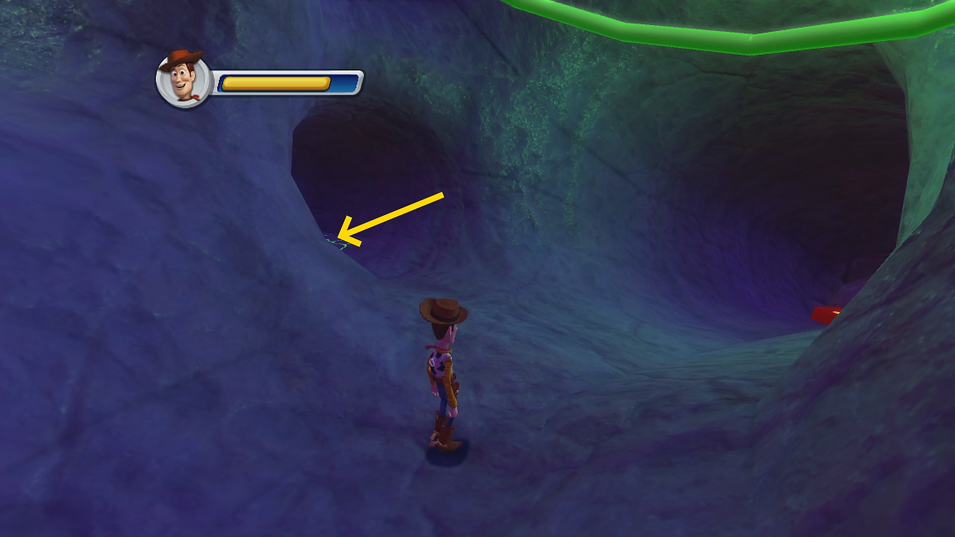 • 赤いレールを移動し、電気ビリビリの壁の前に到着