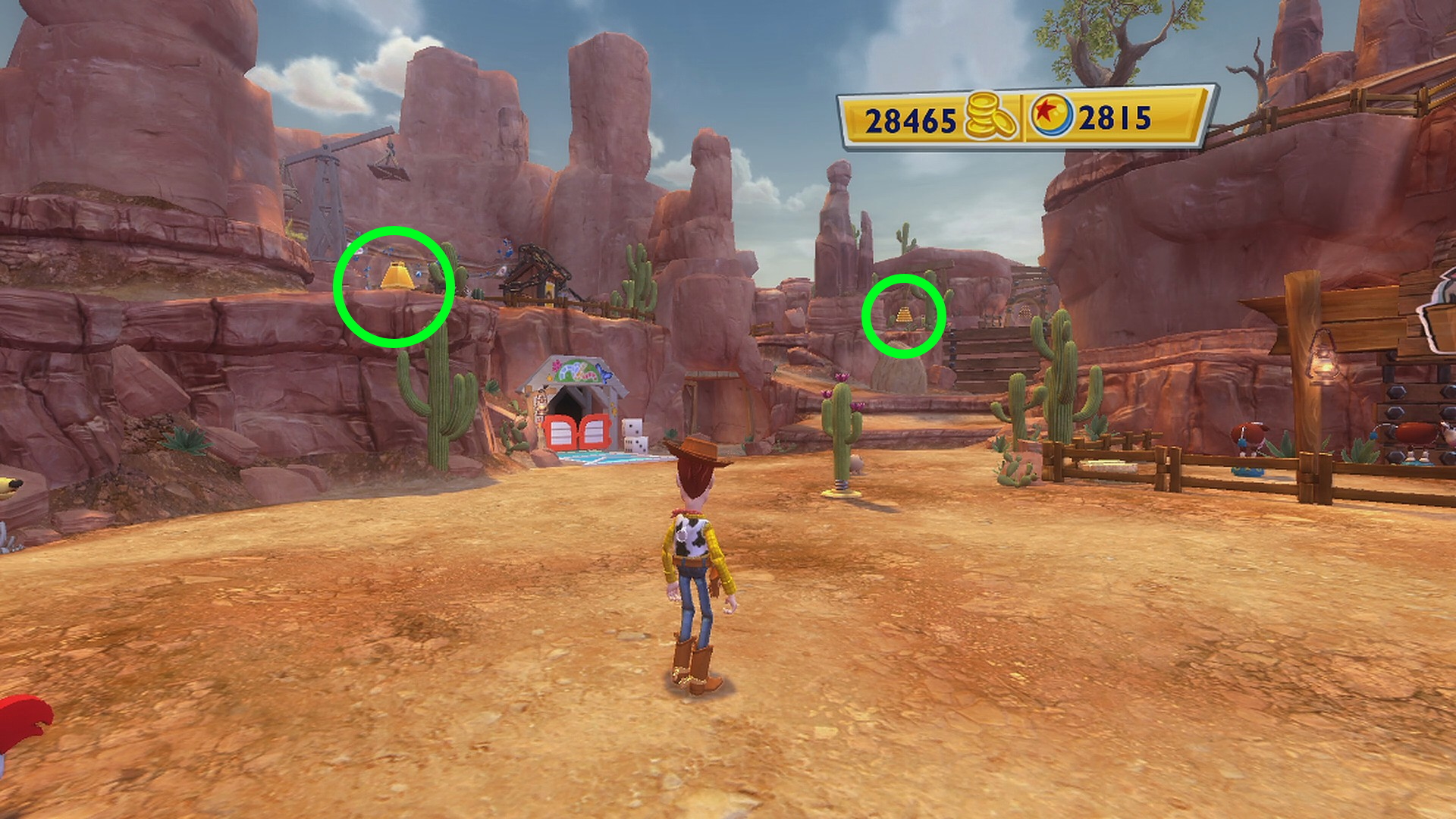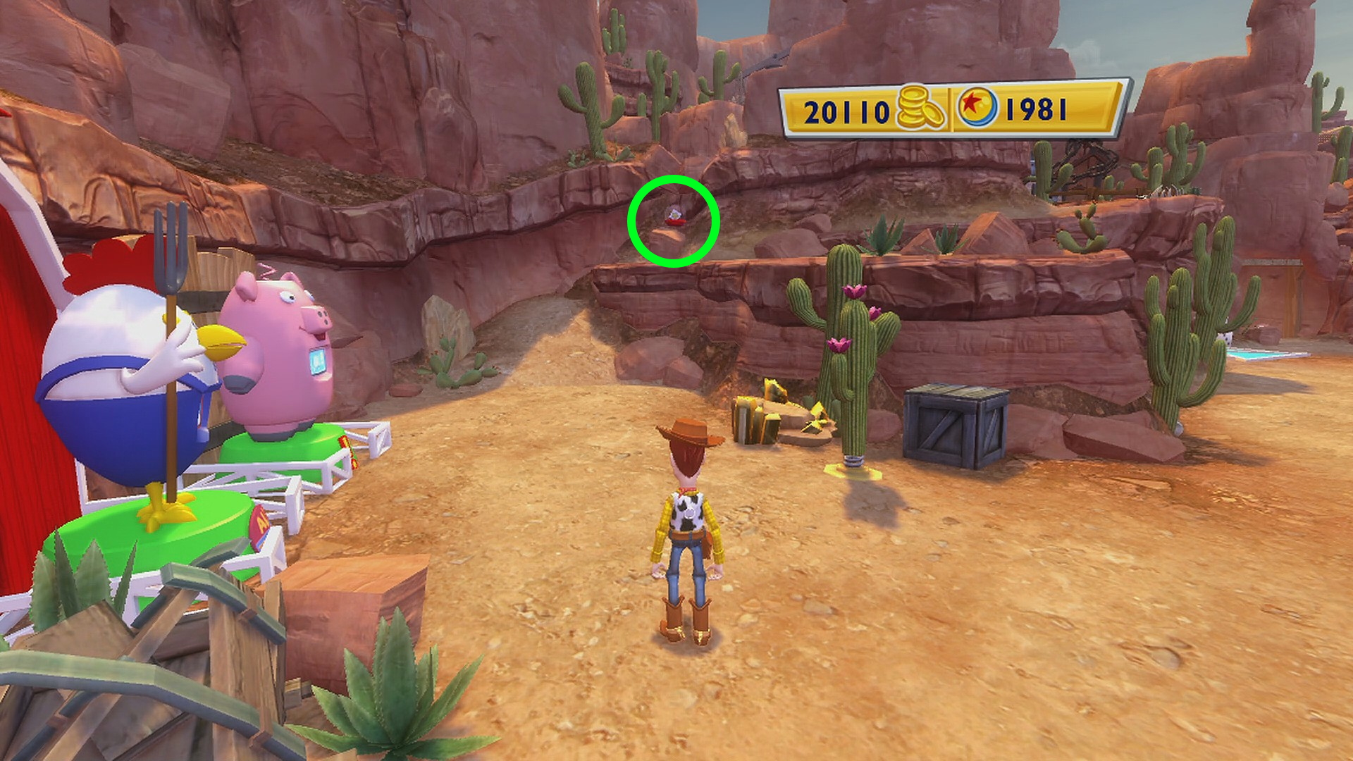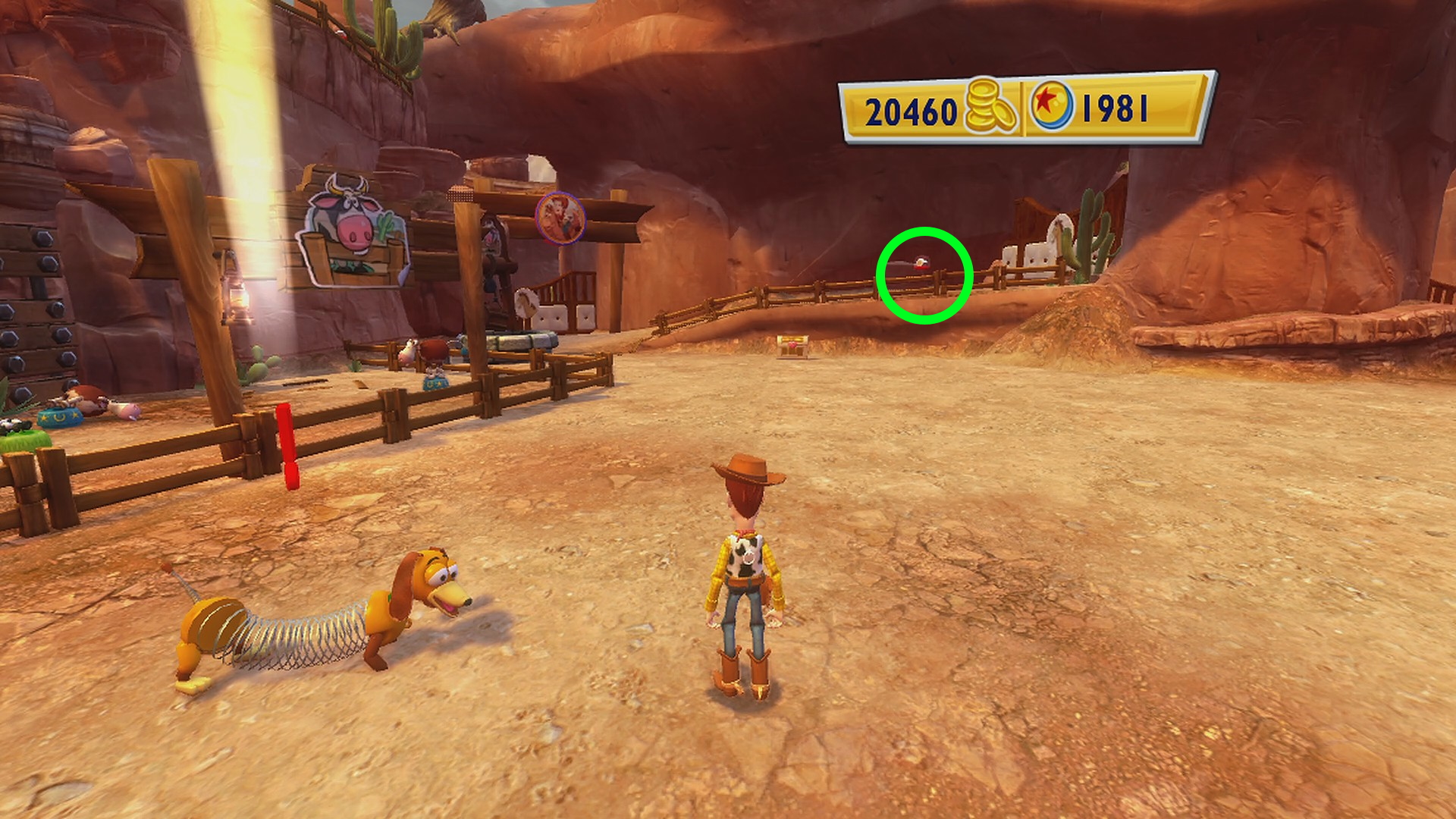 • スリンキーがいる広場の右側、馬の看板があるゲートの手前に Pink Cowgirl Hat