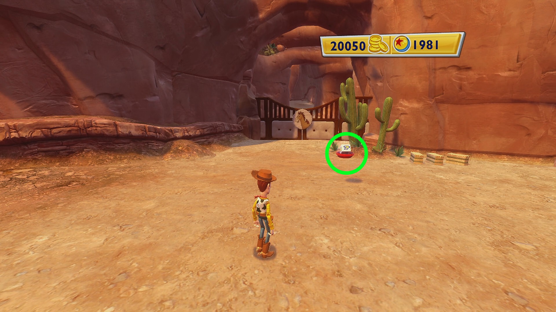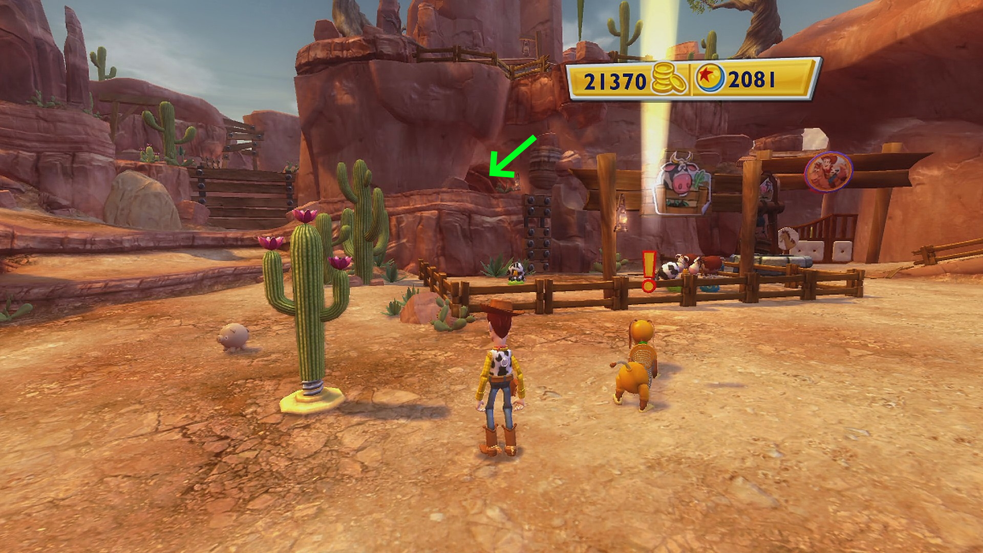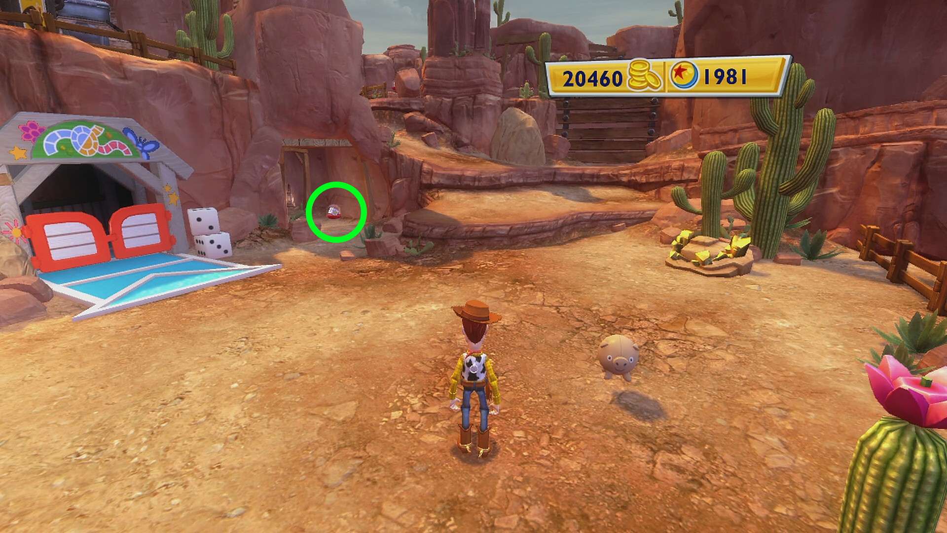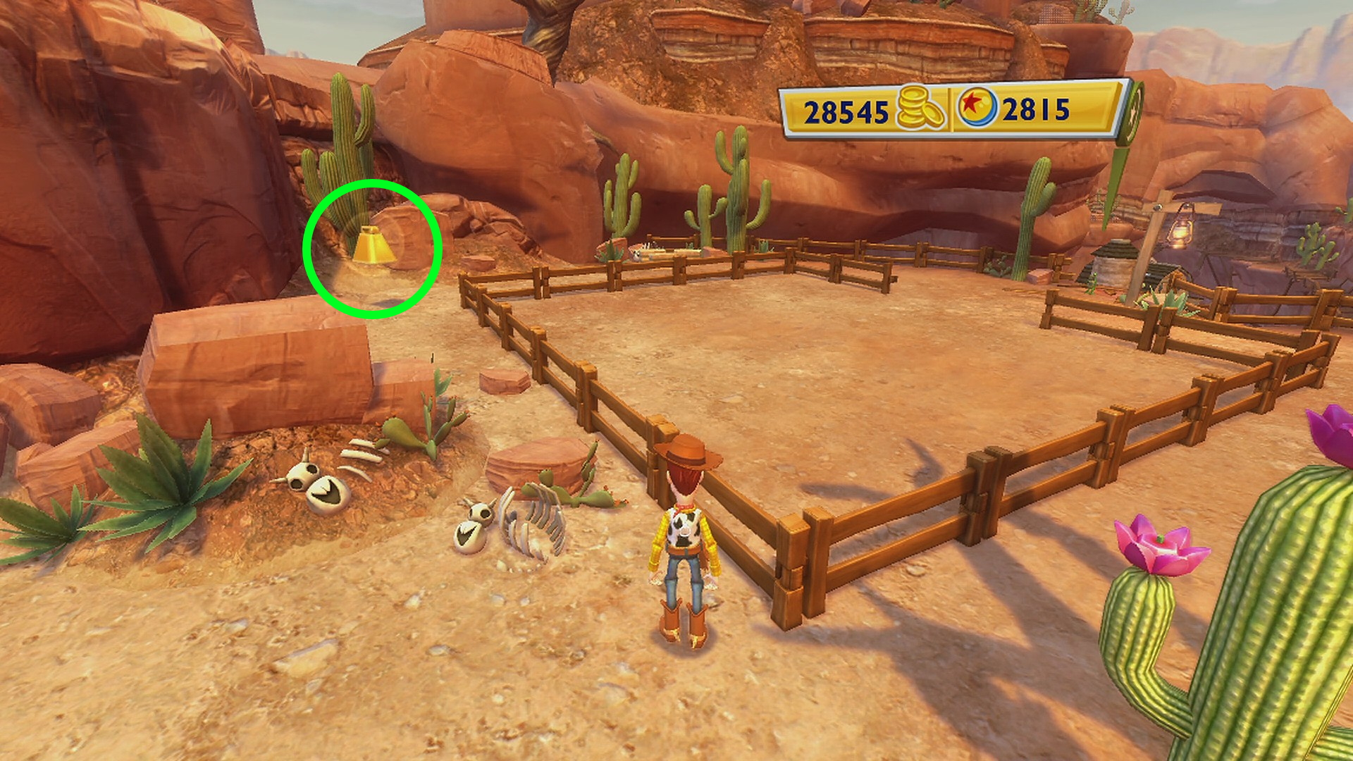 • スリンキーがいる広場の右側、馬の看板があるゲートの手前に Pink Cowgirl Hat