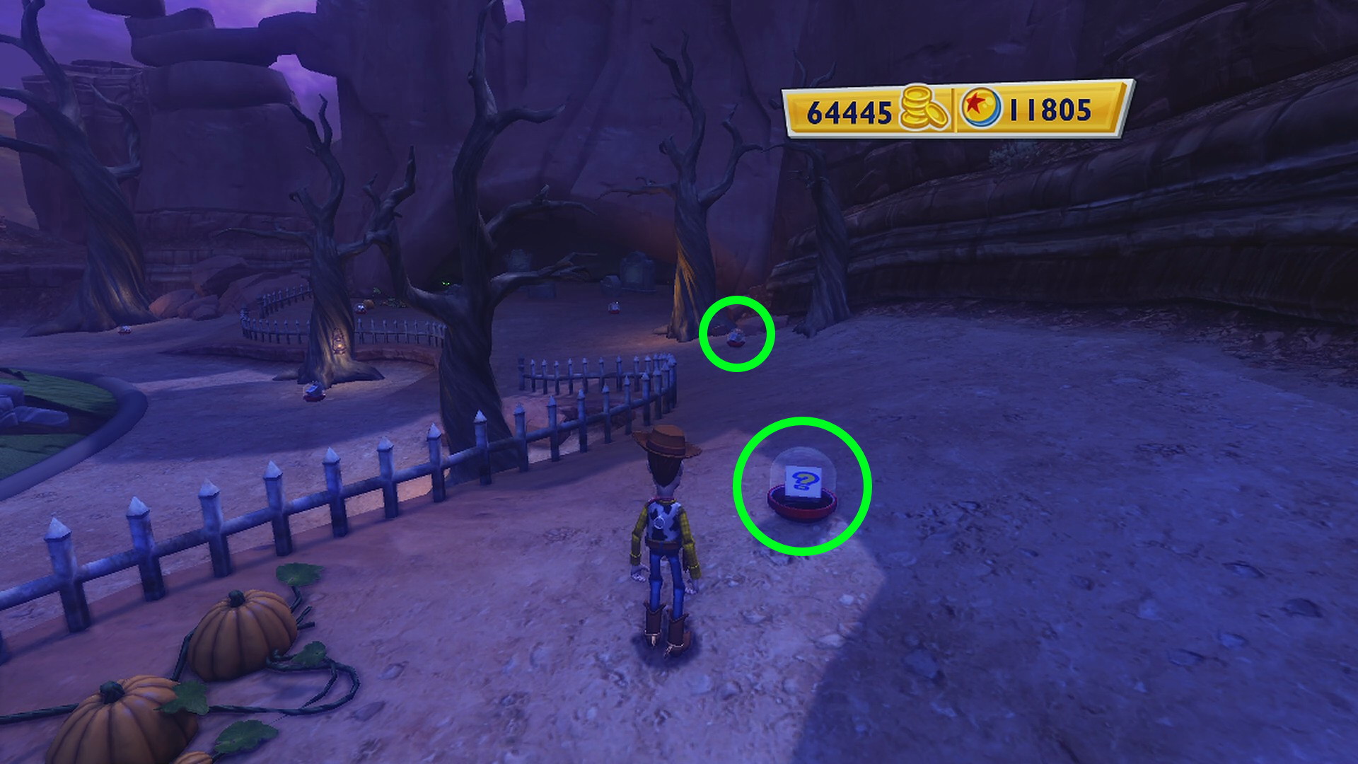 - 右手のかぼちゃの方に進むと前方に2つのカプセル (他にも目視できるけど混乱しないよう、とりあえず順番に回収していく)