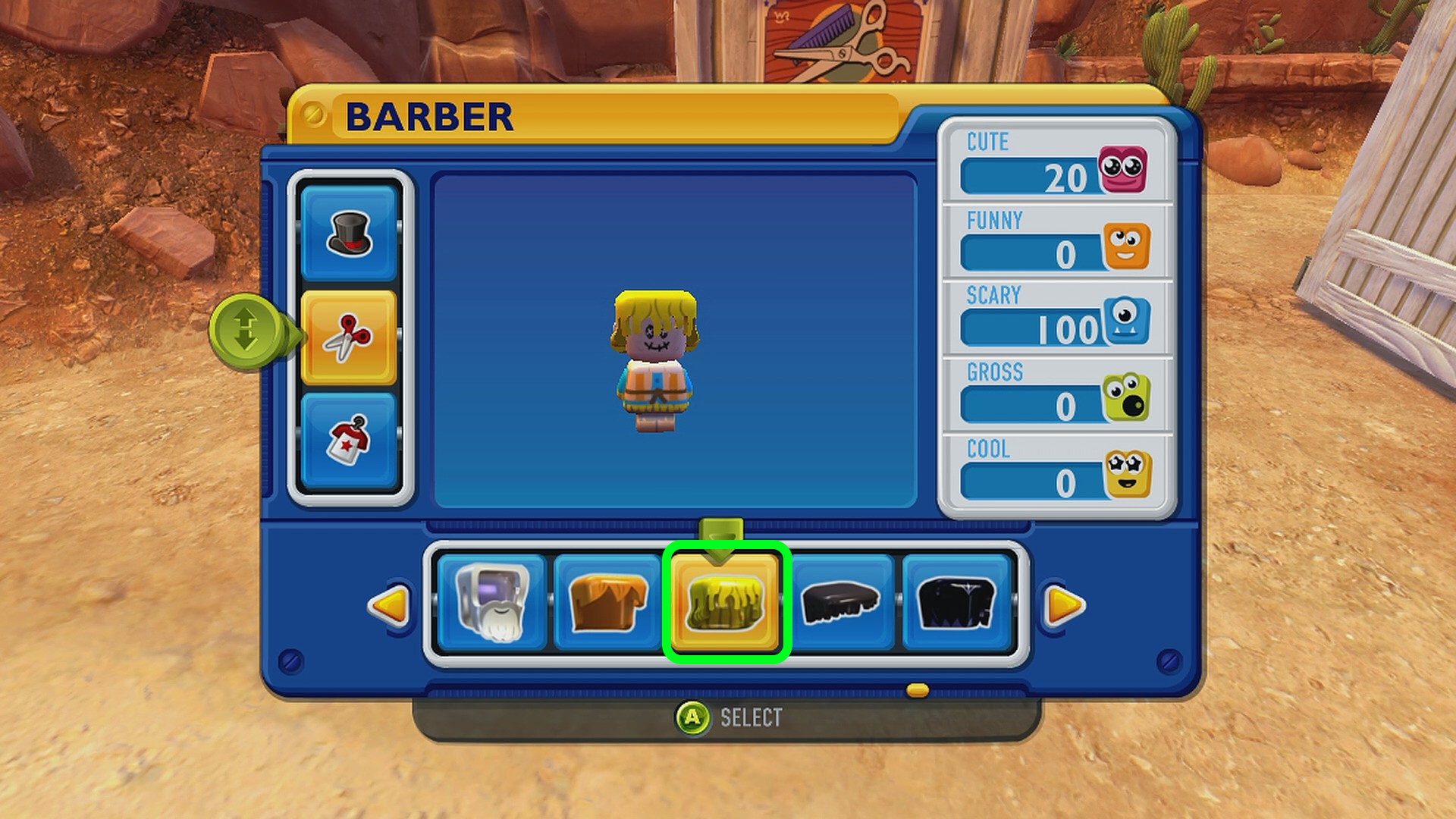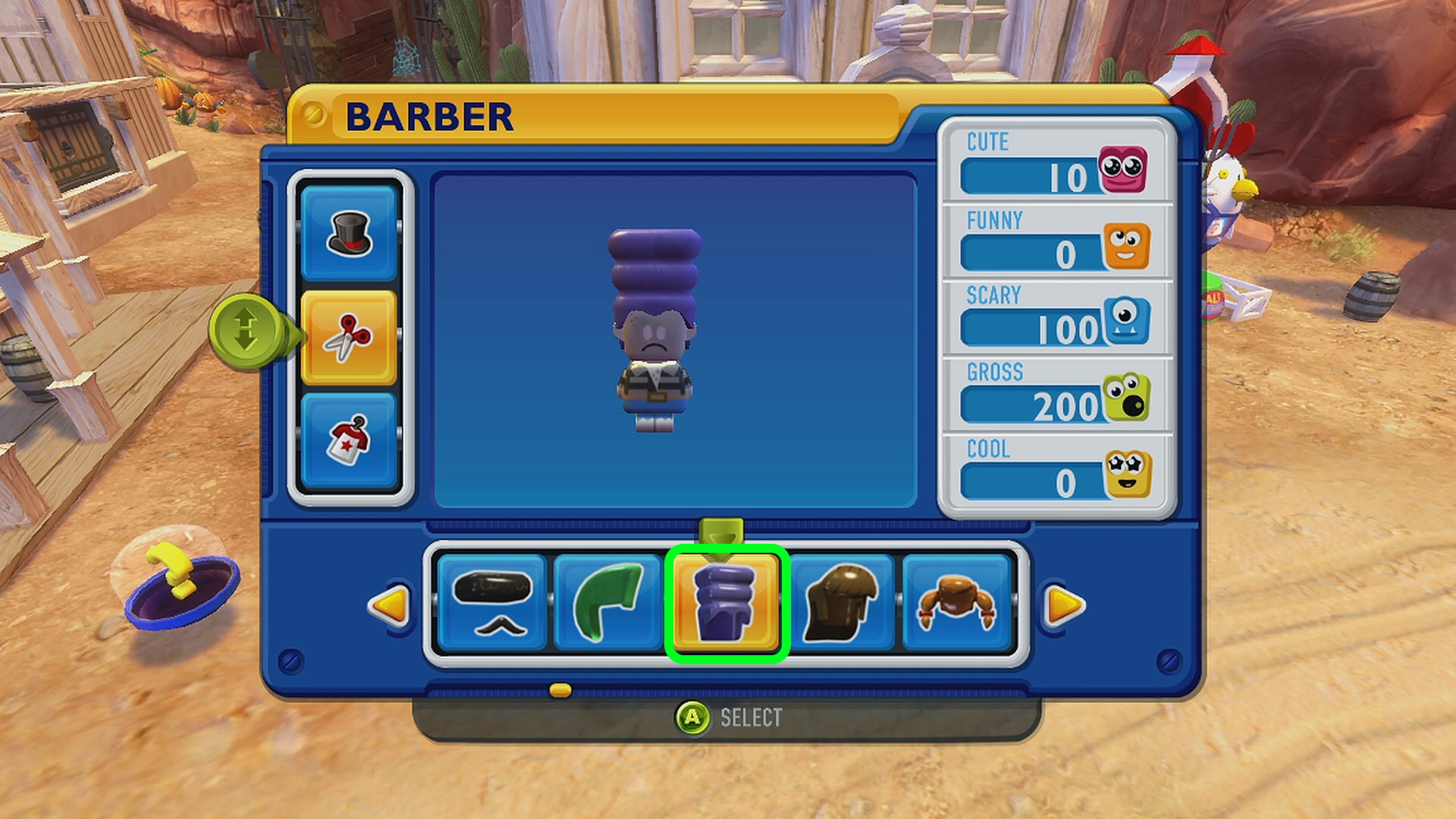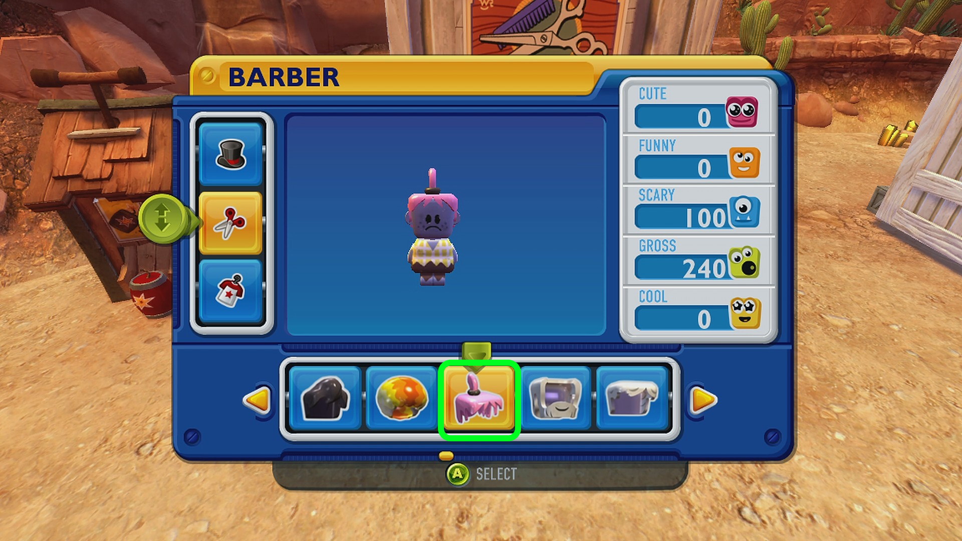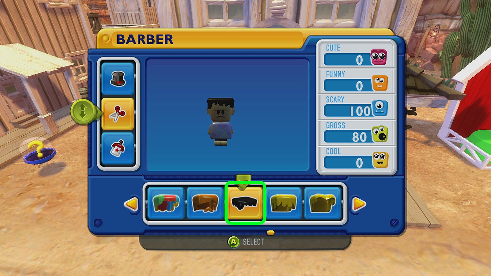 - Main Town の服屋でかかしの服、床屋でかかしの髪型にする