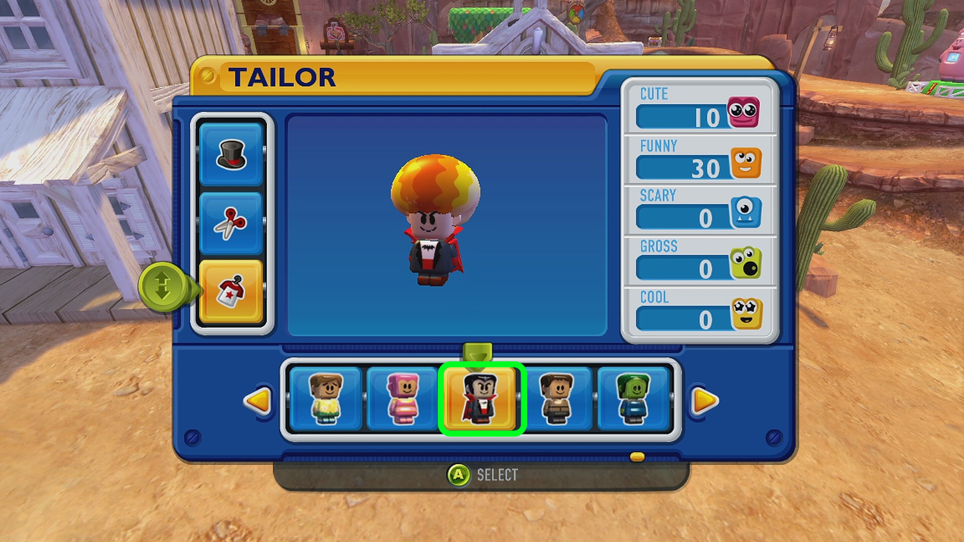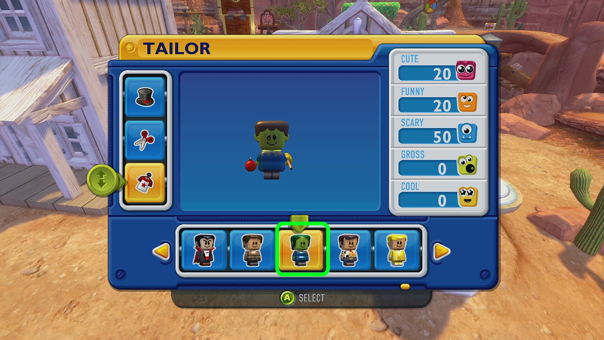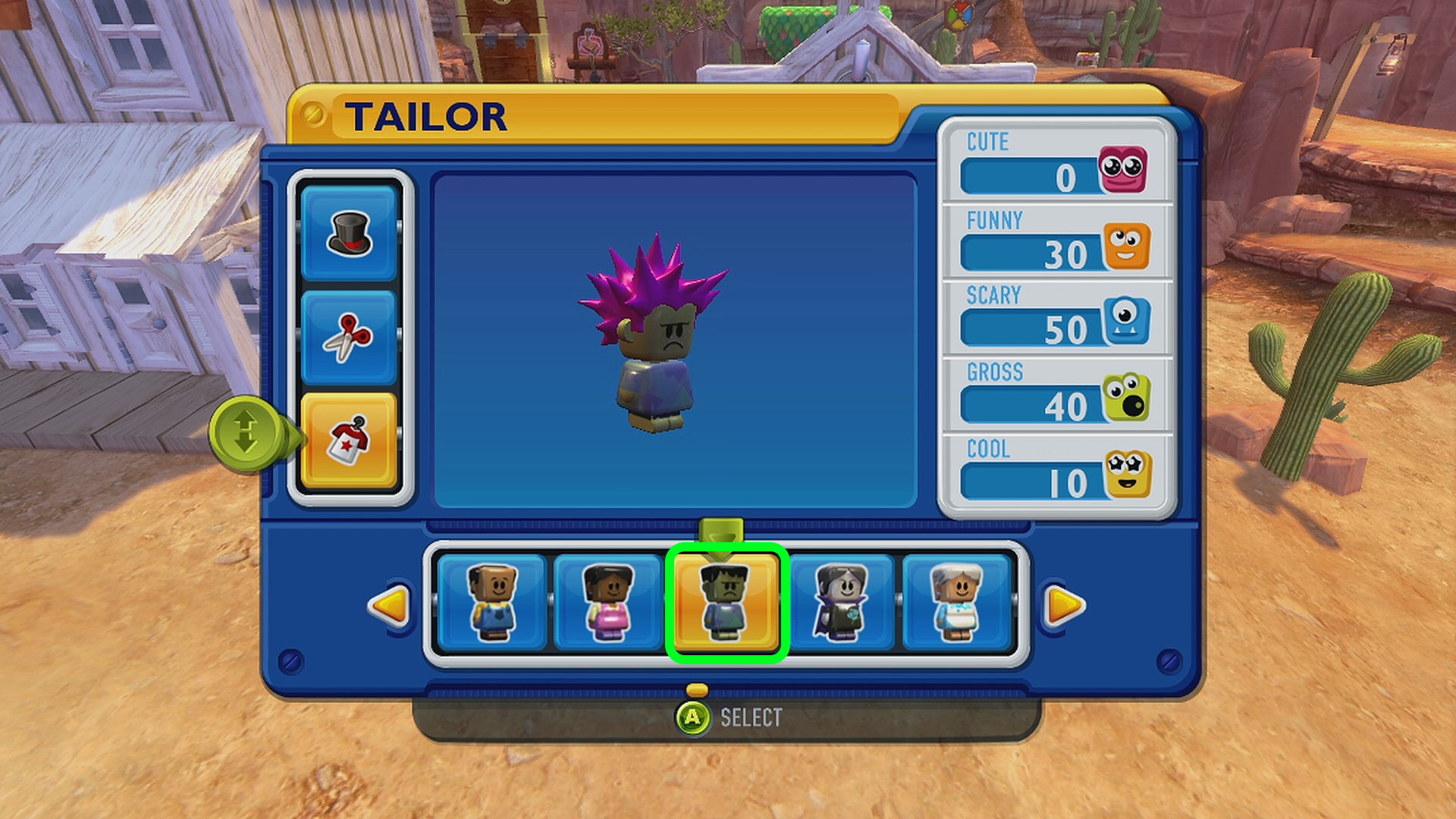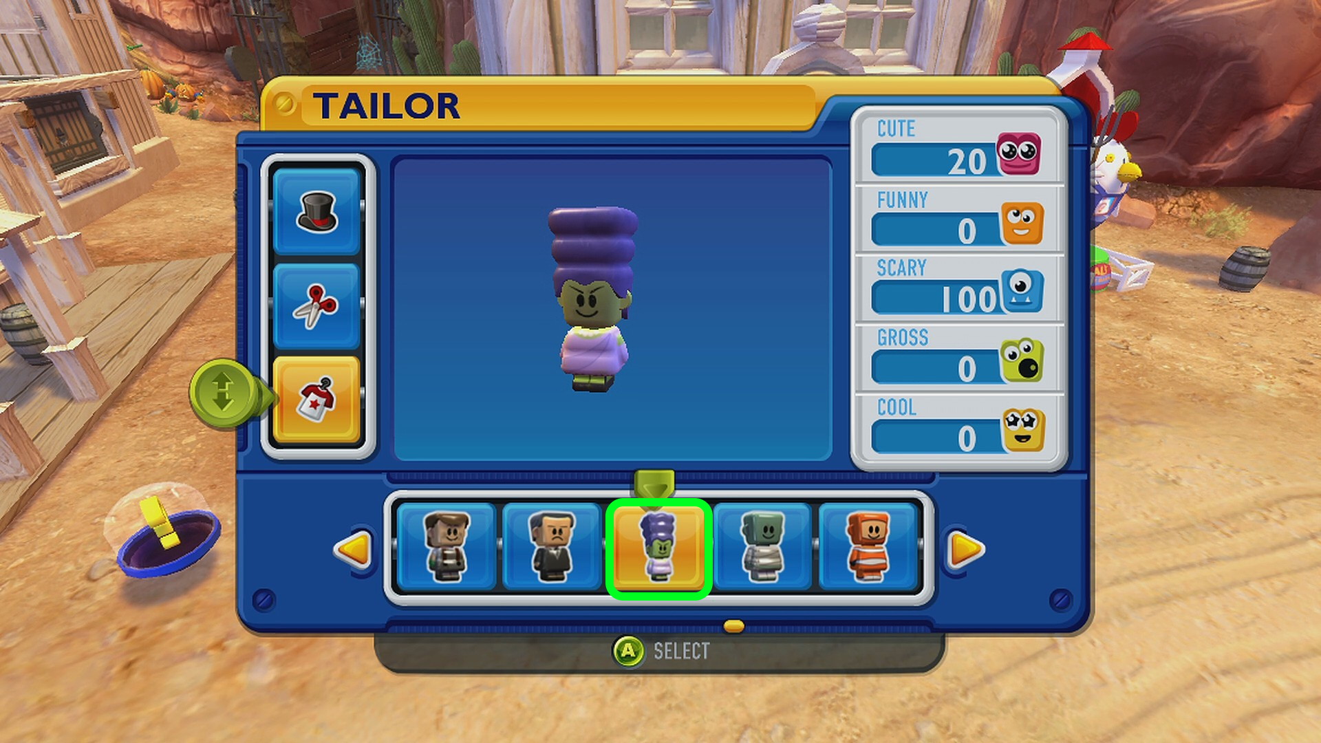 - Main Town の服屋でかかしの服、床屋でかかしの髪型にする