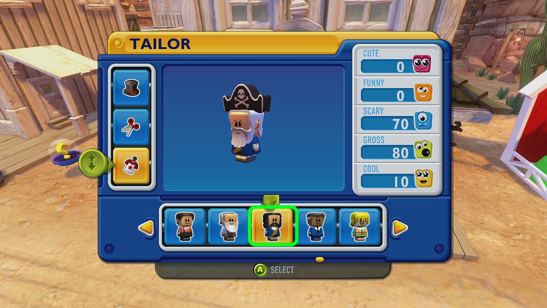 - 町民のひとりを海賊の帽子、海賊の髪型、海賊の服に仕立てる