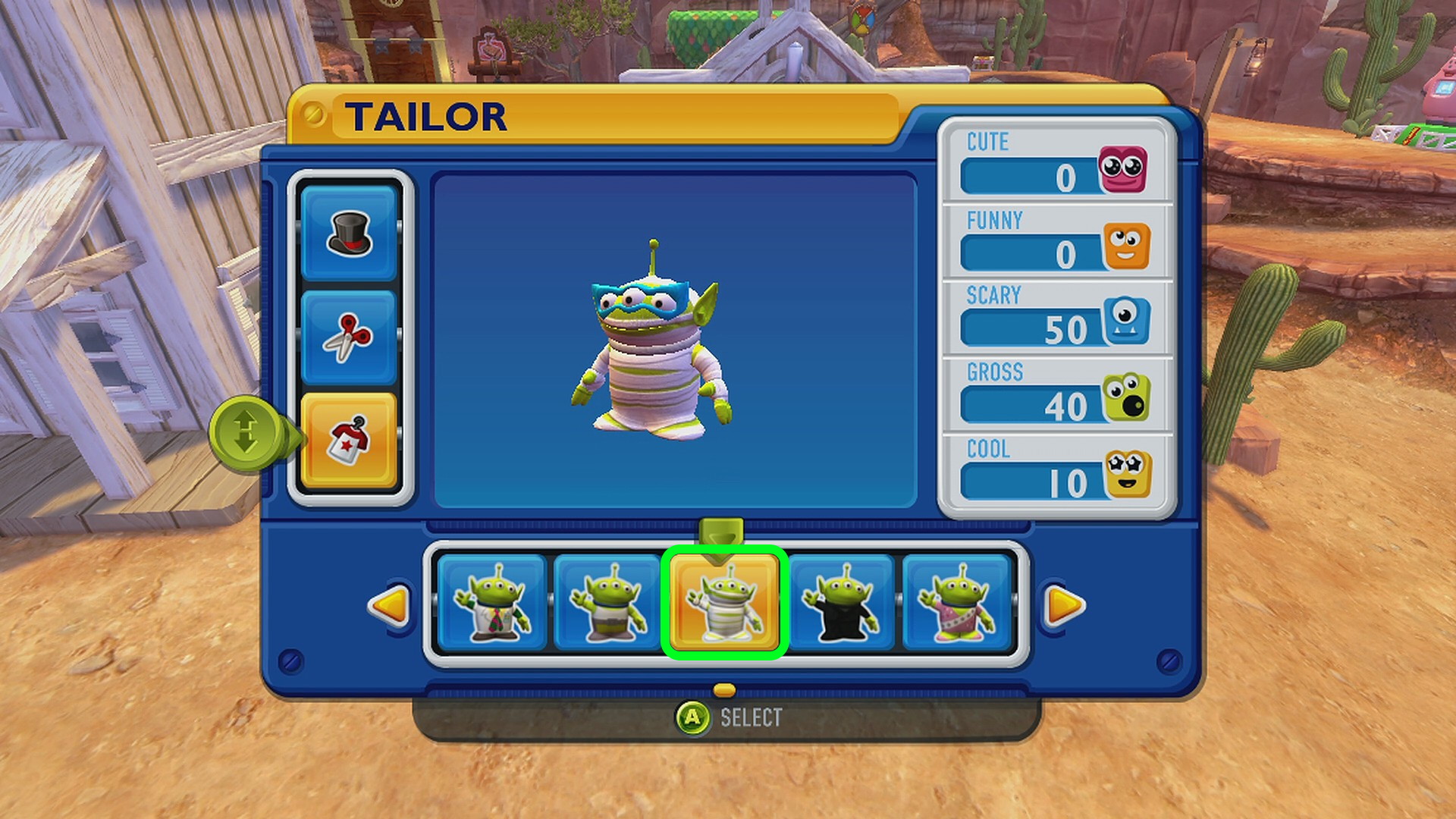 - エイリアンに怖いゾンビの服を着せる (すでに済み)