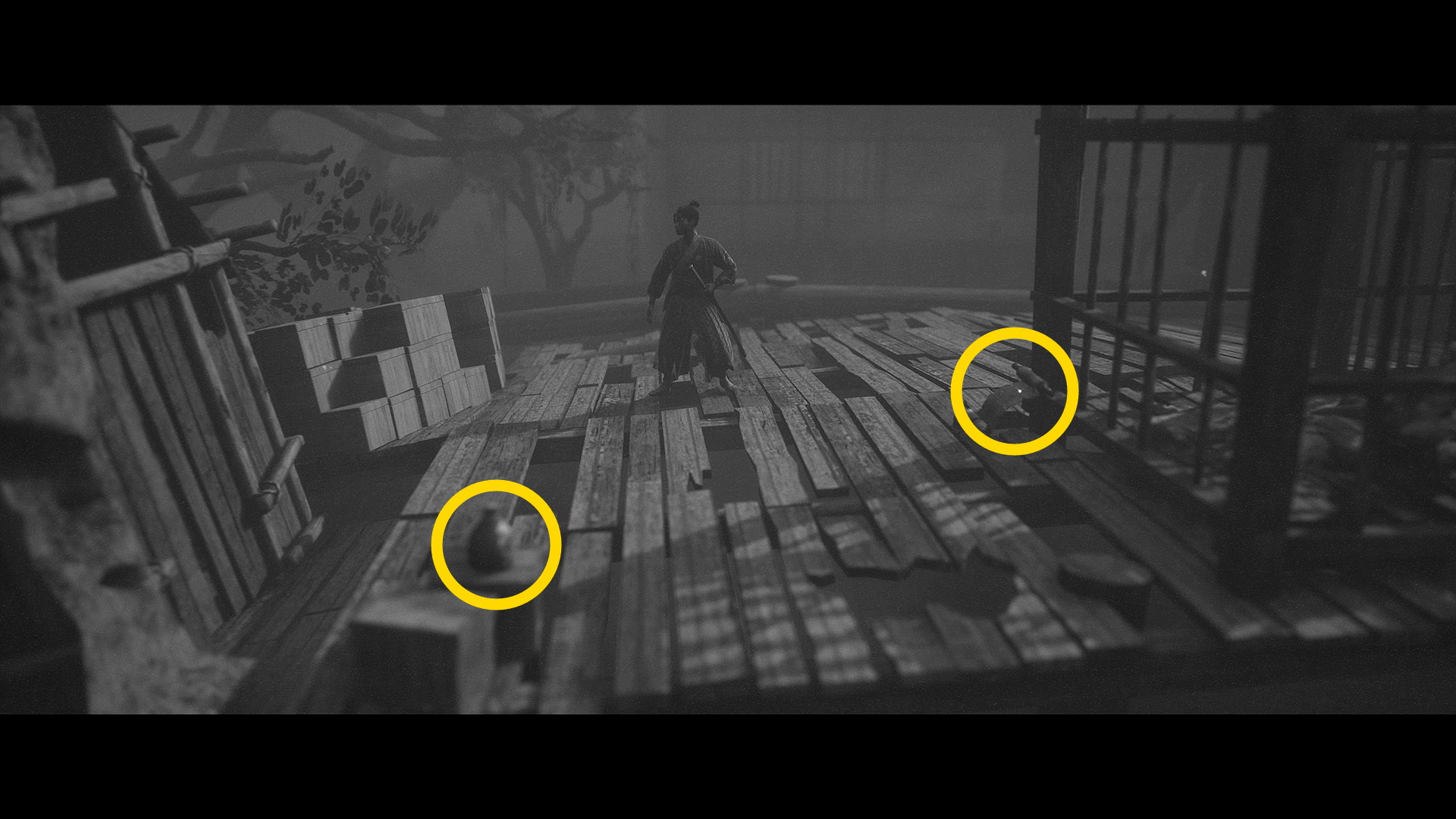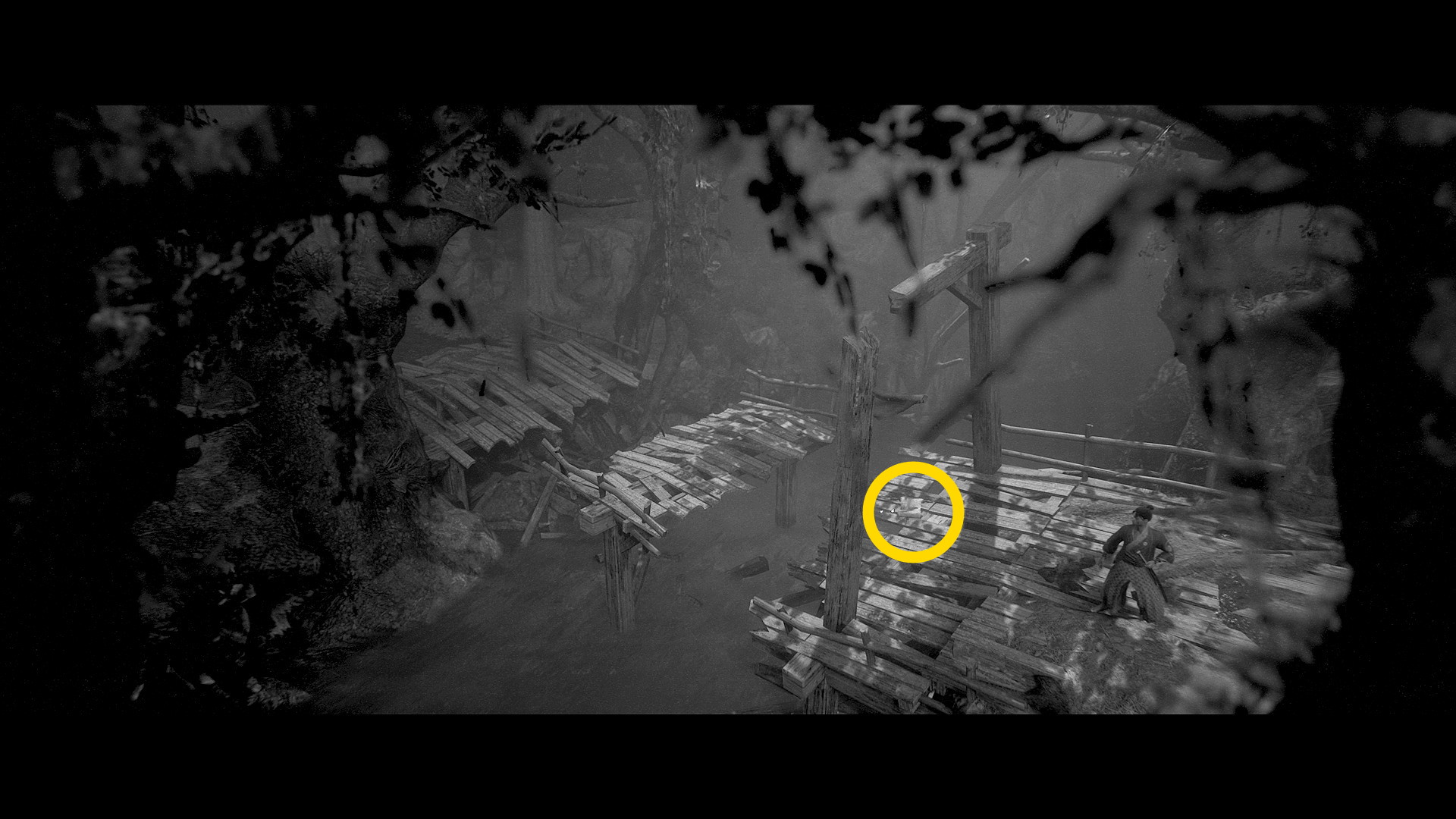- 橋の上にあがり、2箇所の装置を切ることで眼下にいる敵を環境キル