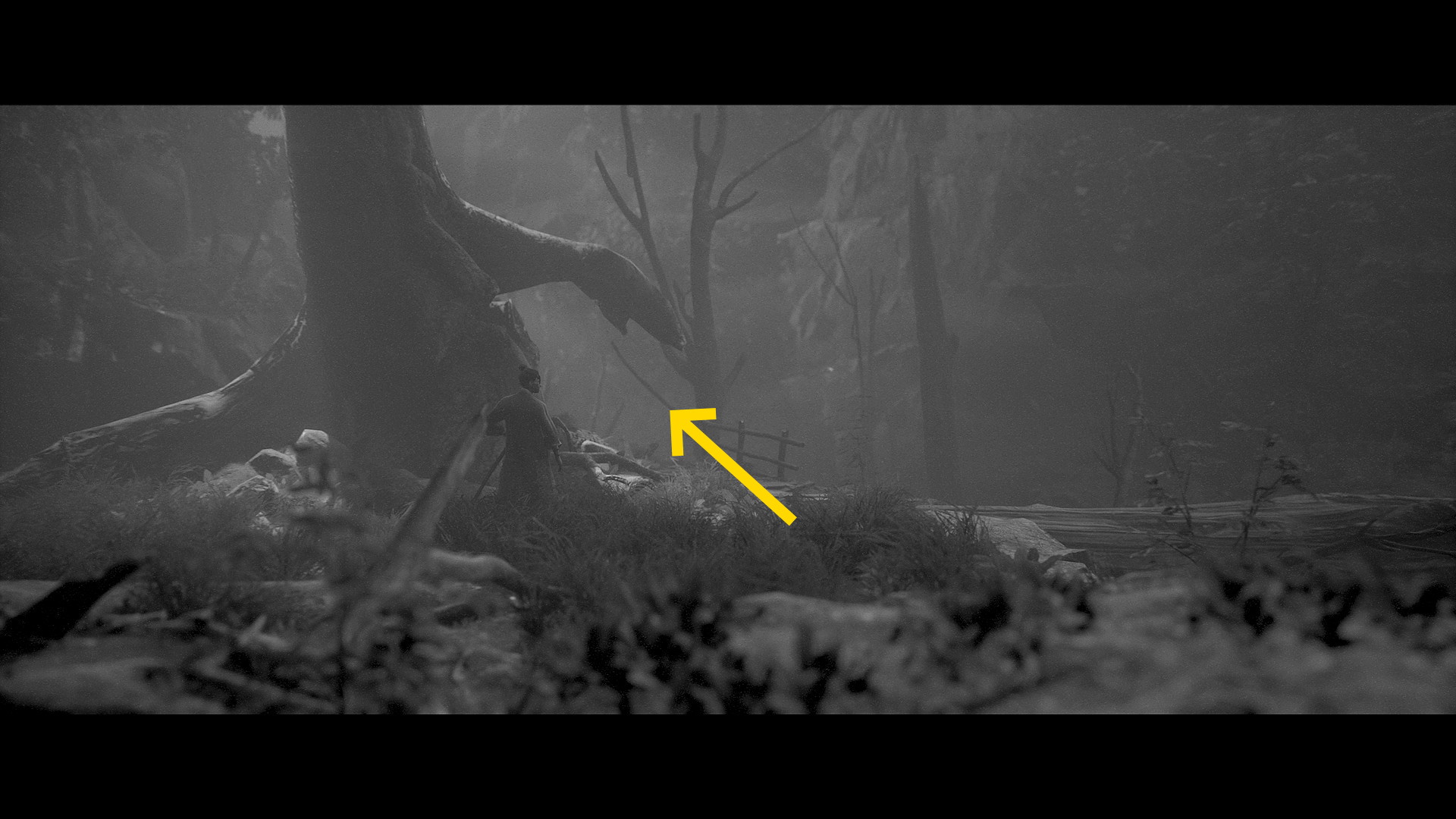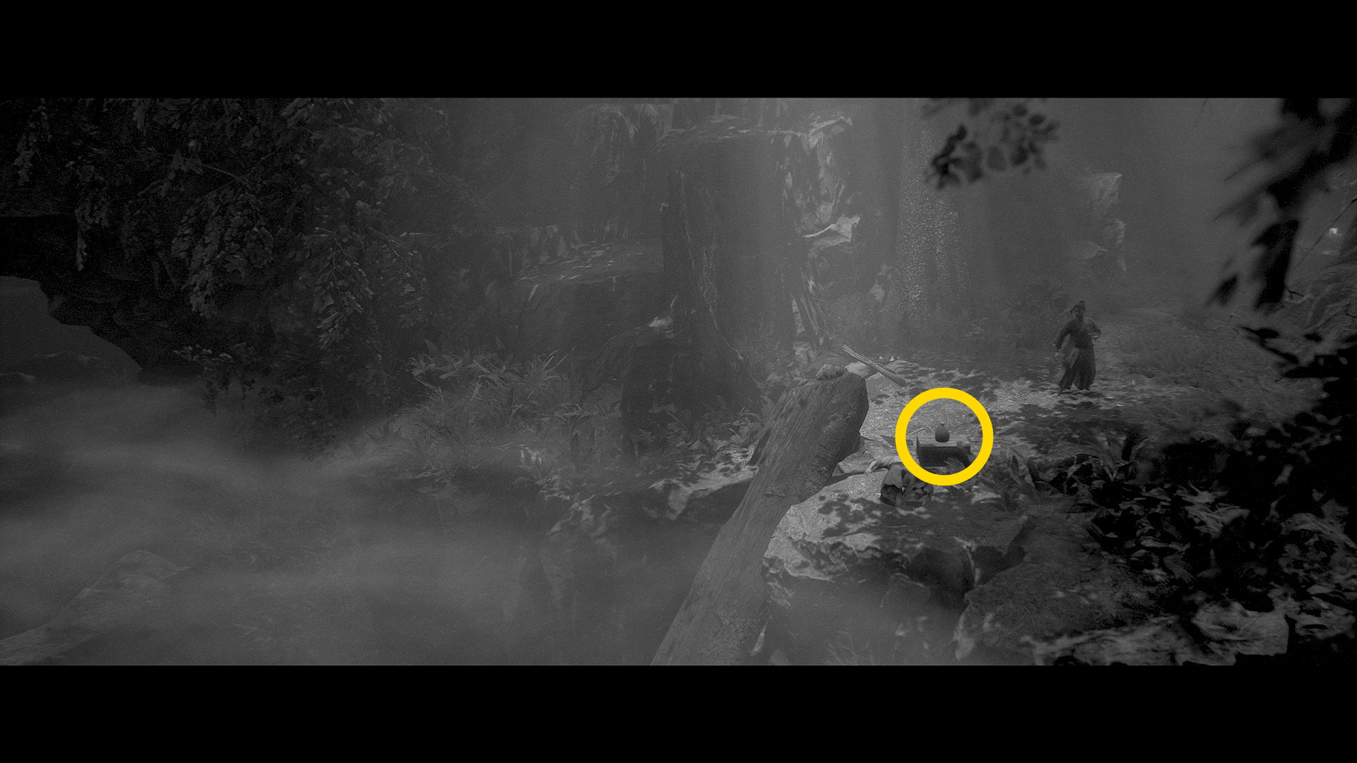 - 祠を通過したら細い木を倒し、向こう側で 幽霊 と 気力増加