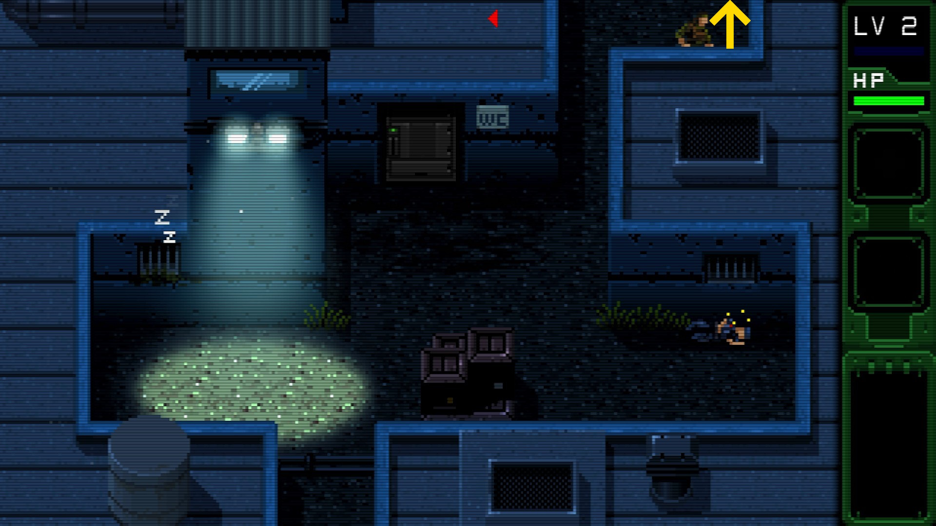 - ここまでノーアラートで敵を倒せていれば、この敵を倒した時点でレベル2になり、実績「軍曹」解除