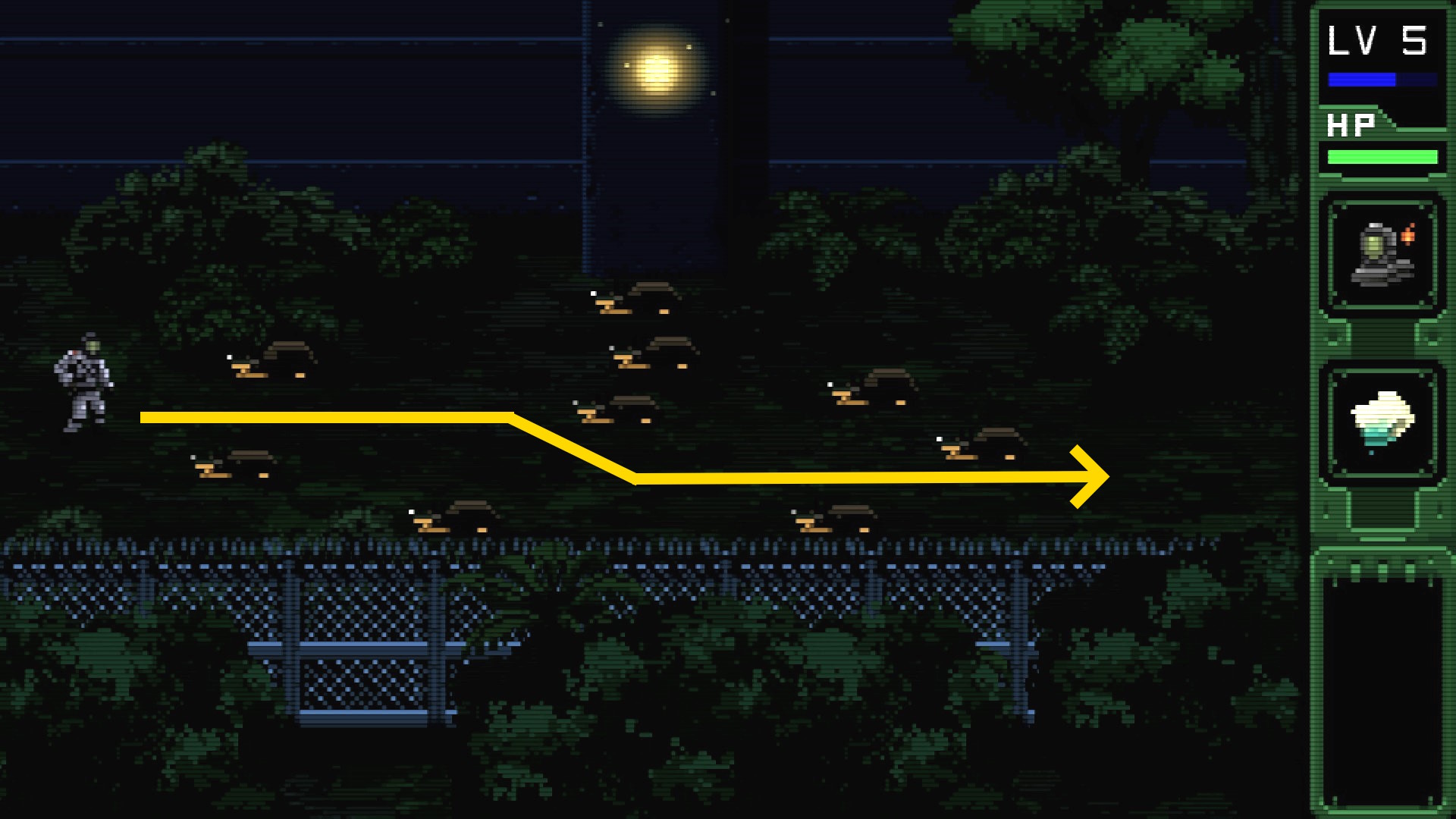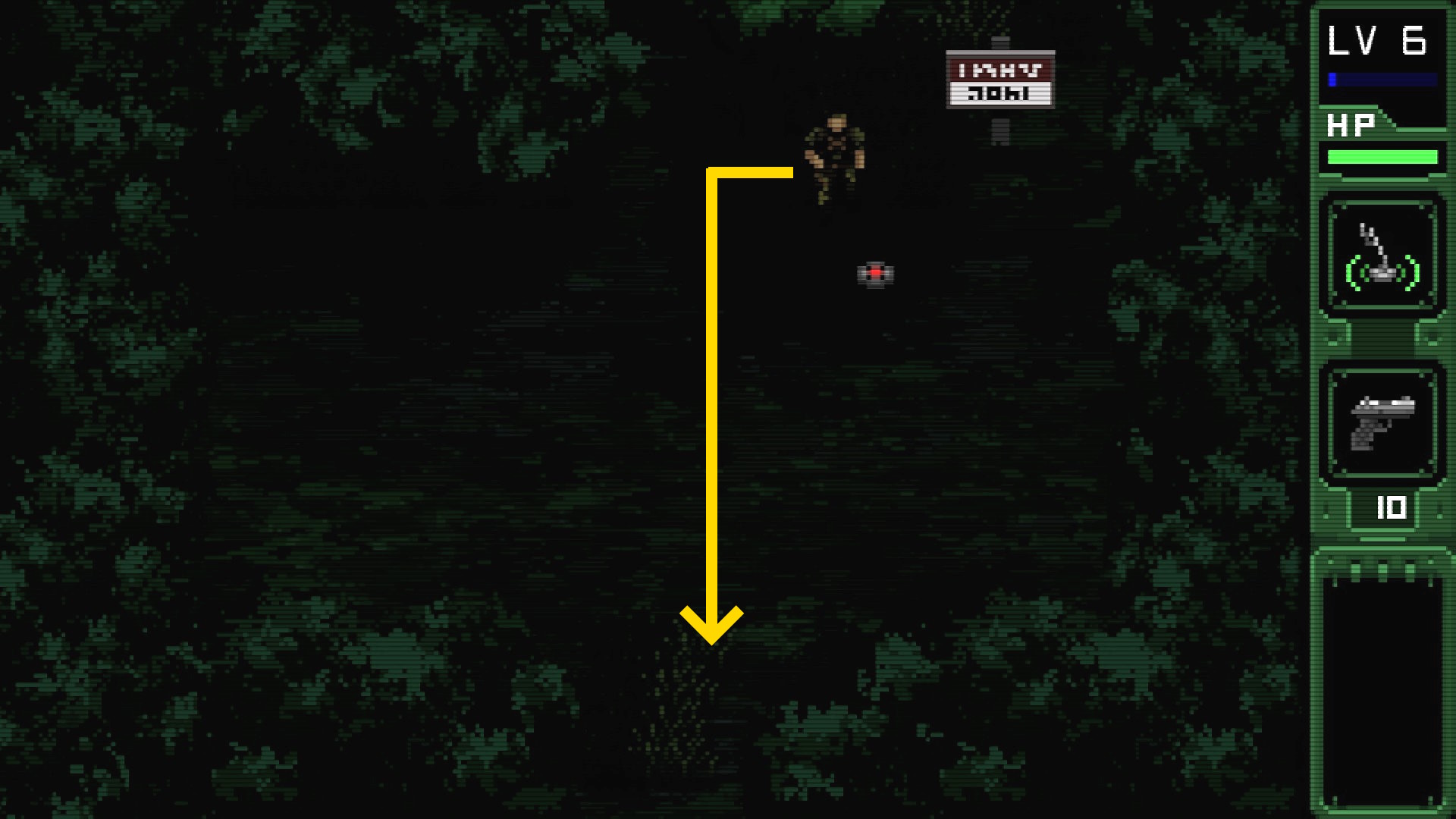 - コンパスを頼りに正しいルートを進むことになるが、移動先のマップには攻撃性の高い植物の敵が出現するため(しかも銃で3発当てないと倒せない)、確認するのが煩わしい