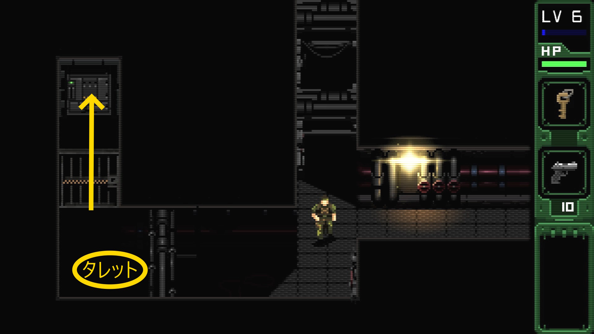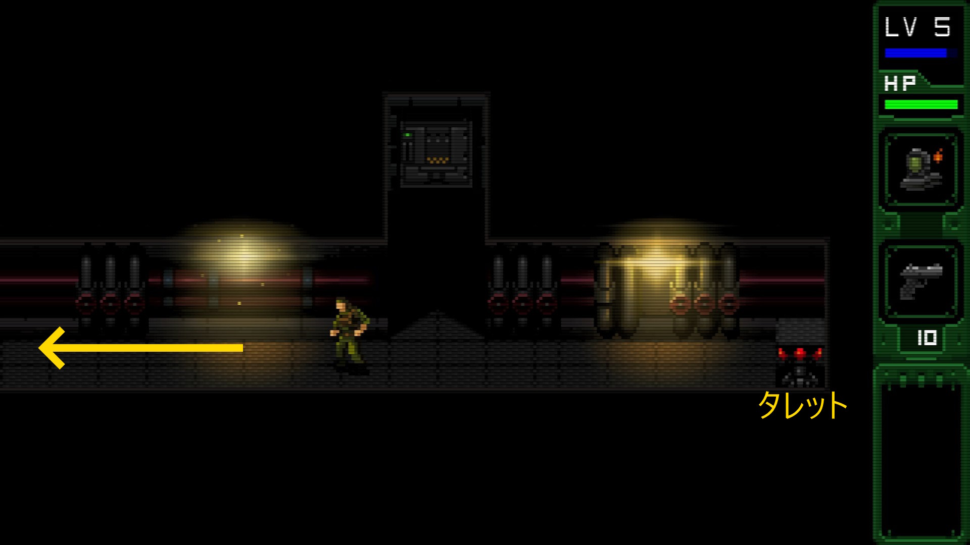 - トイレでセーブしたらタレットが配置されている通路に戻る