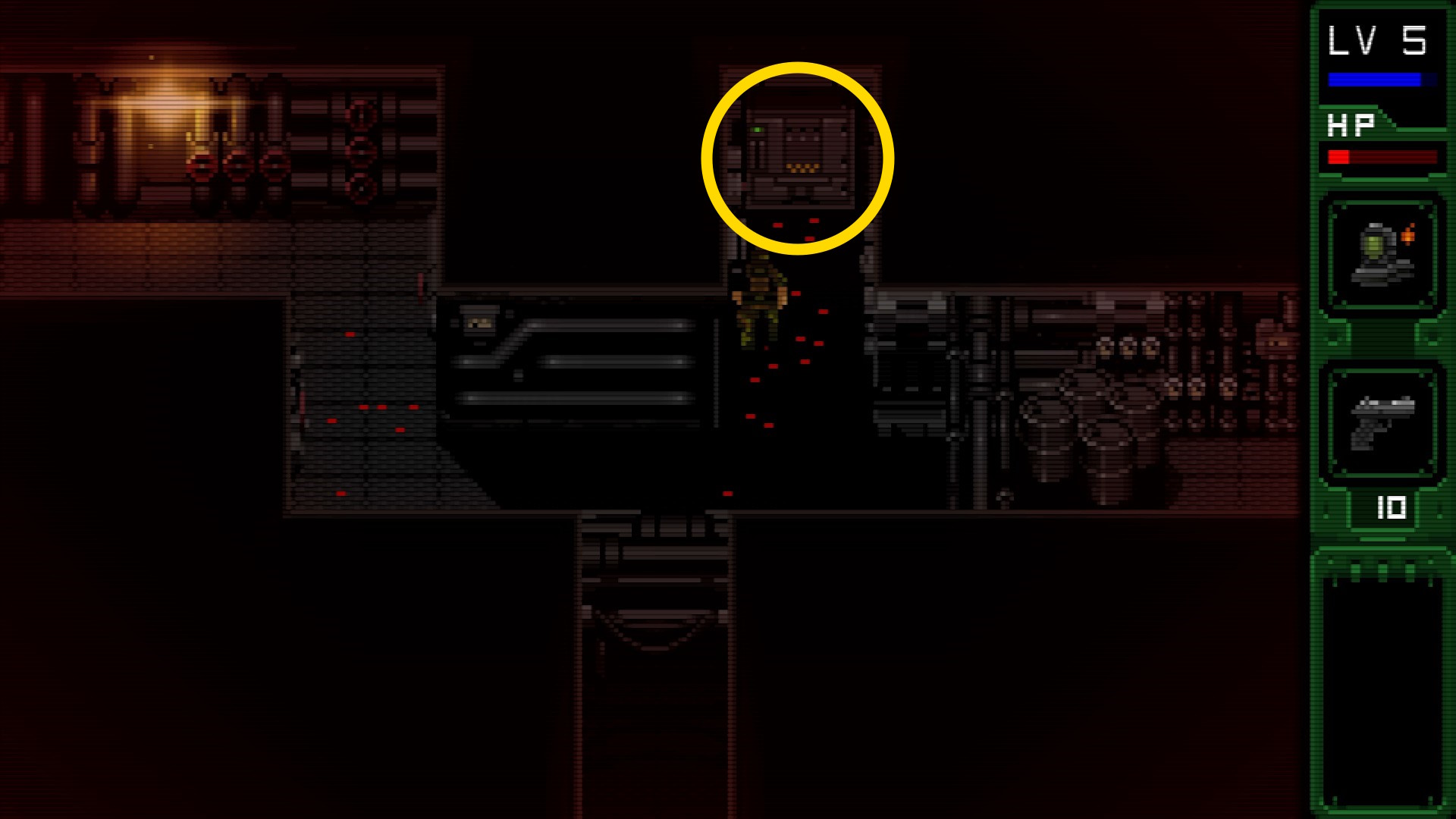 - もし銃弾が足りていないようなら左右に設置された緑箱を壊すことで回収できる(中段・左側の箱からは救急キット)