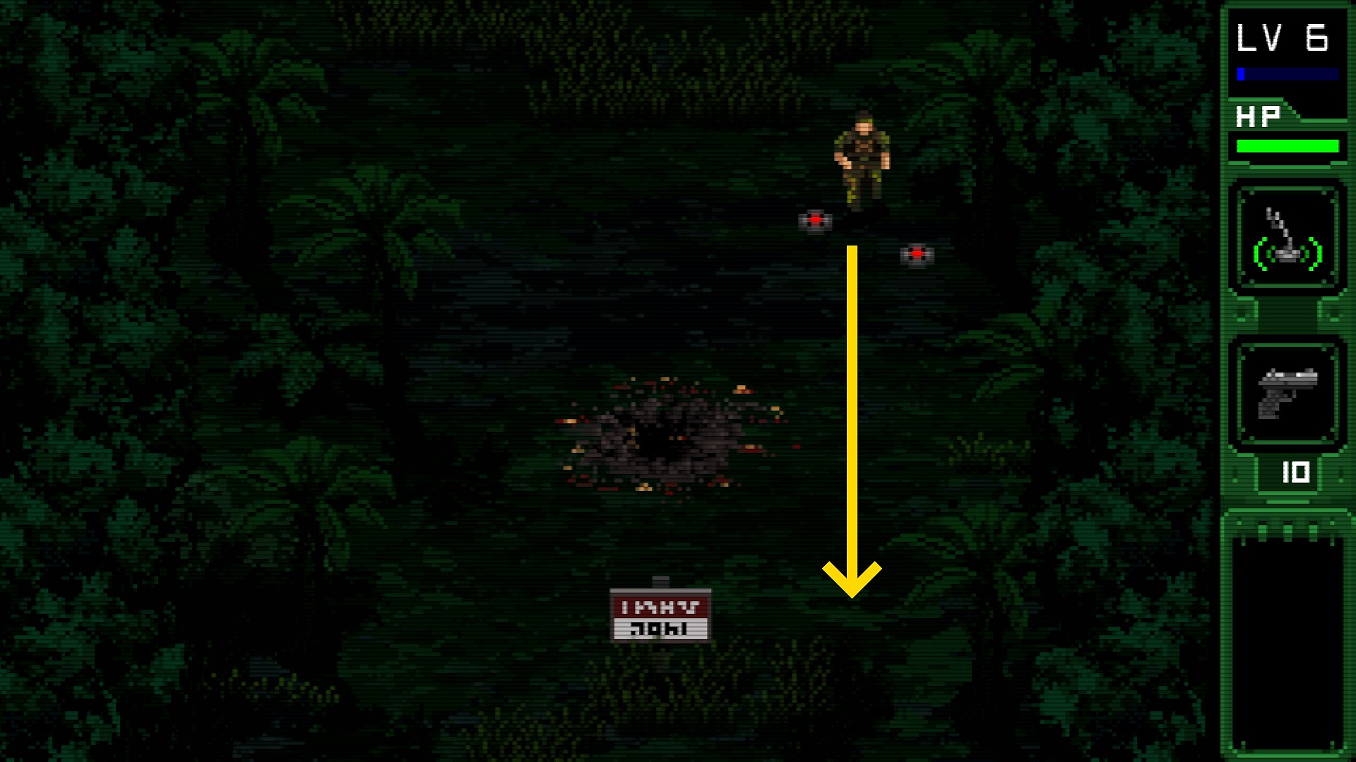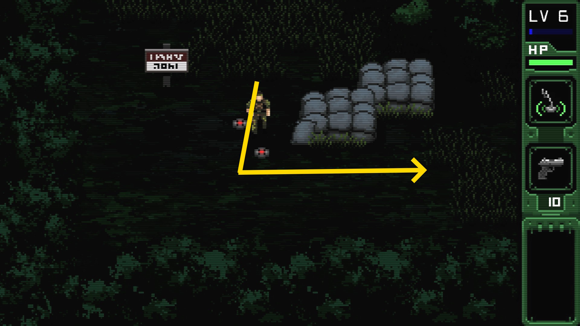 - 金属探知機を装備し、X を押して地雷を見つけながら、少しずつ下に移動していく