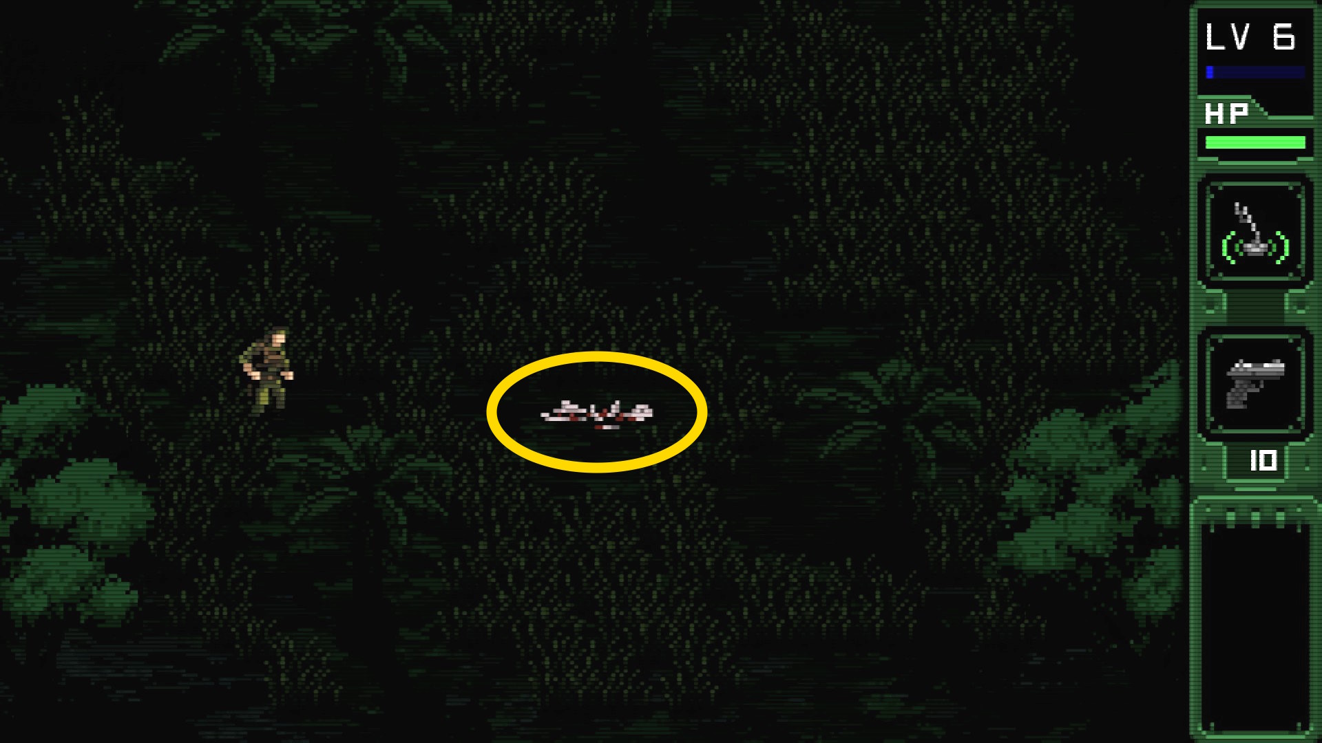 - 尋問シーンが始まり、それを観終わって動こうとすると草むらの中に光るものを発見するカットシーン