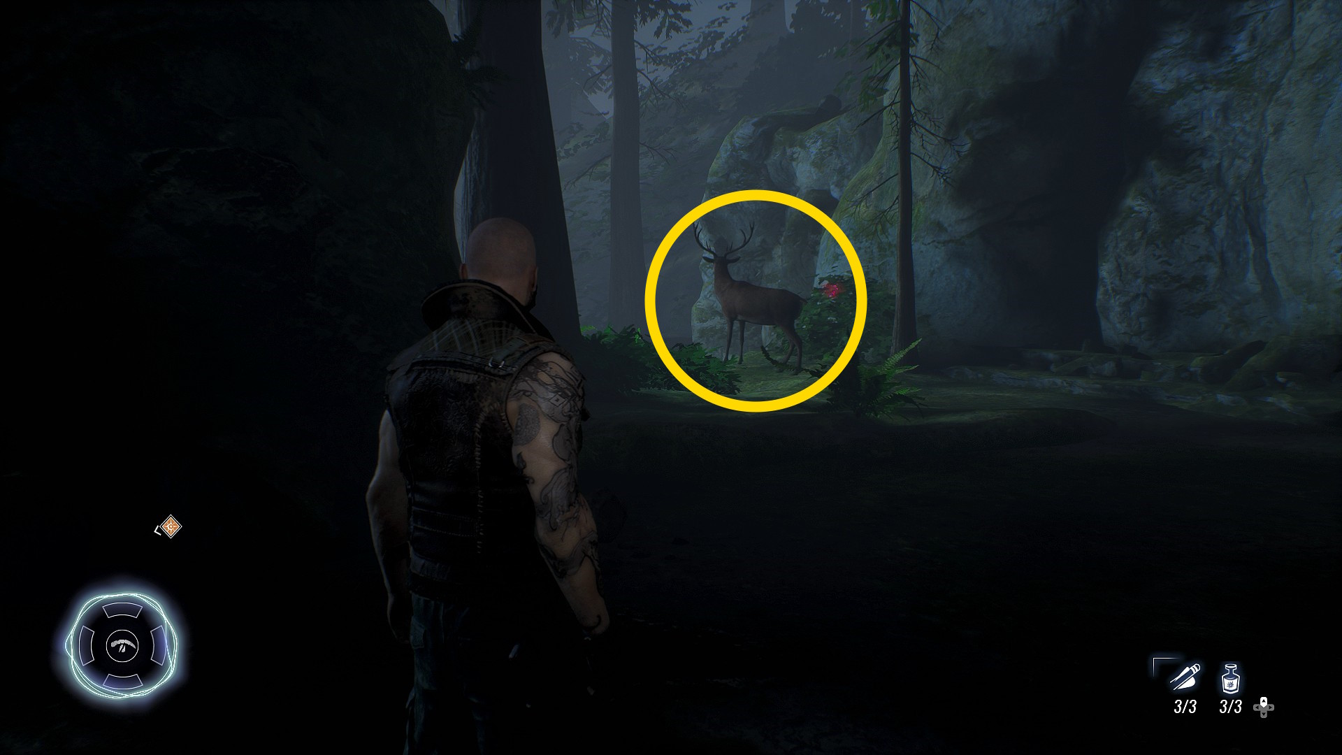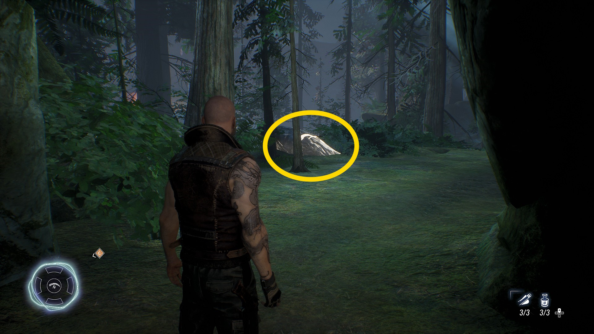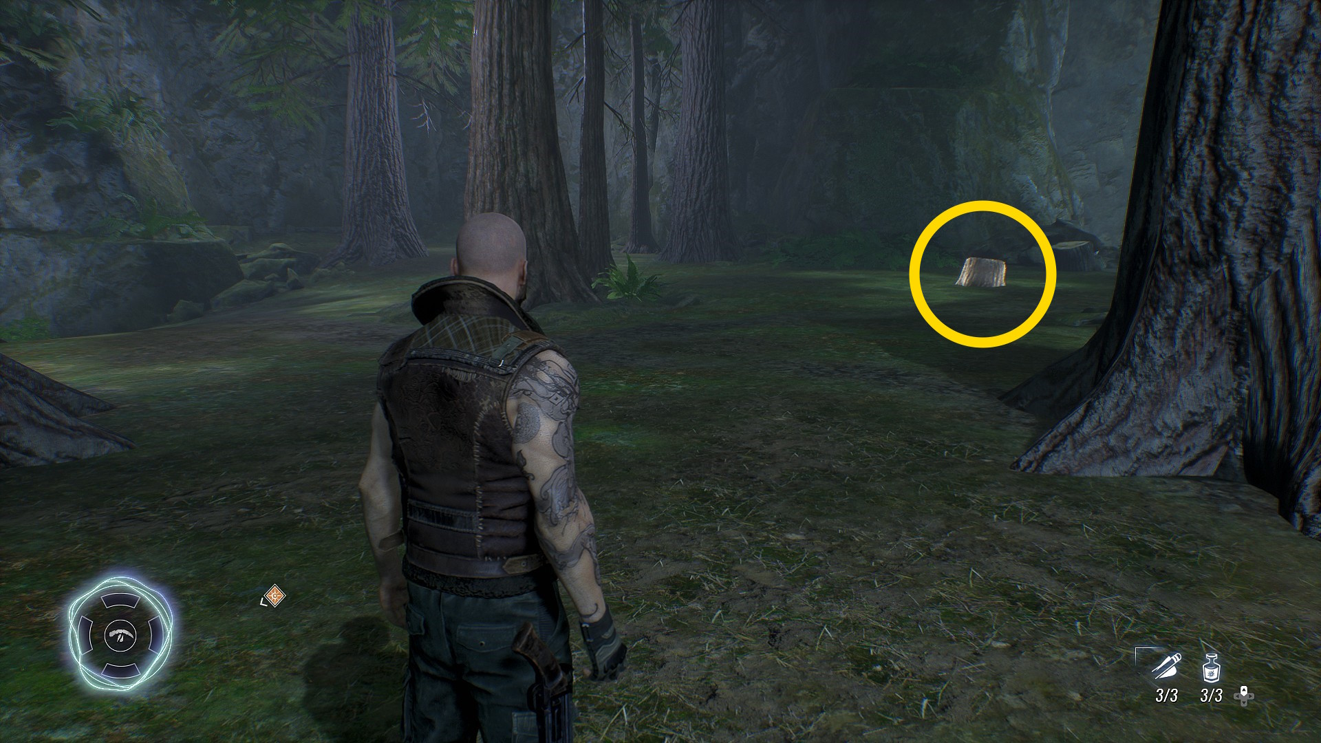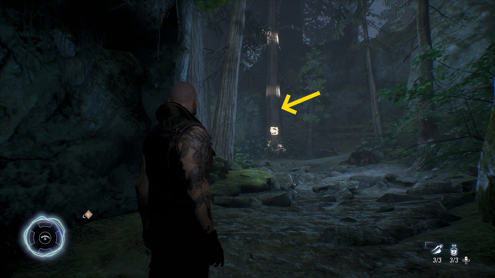 - 熊の精霊をなだめたら、来た道を戻ると右側に点滅する切り株があり、精霊(32/134)