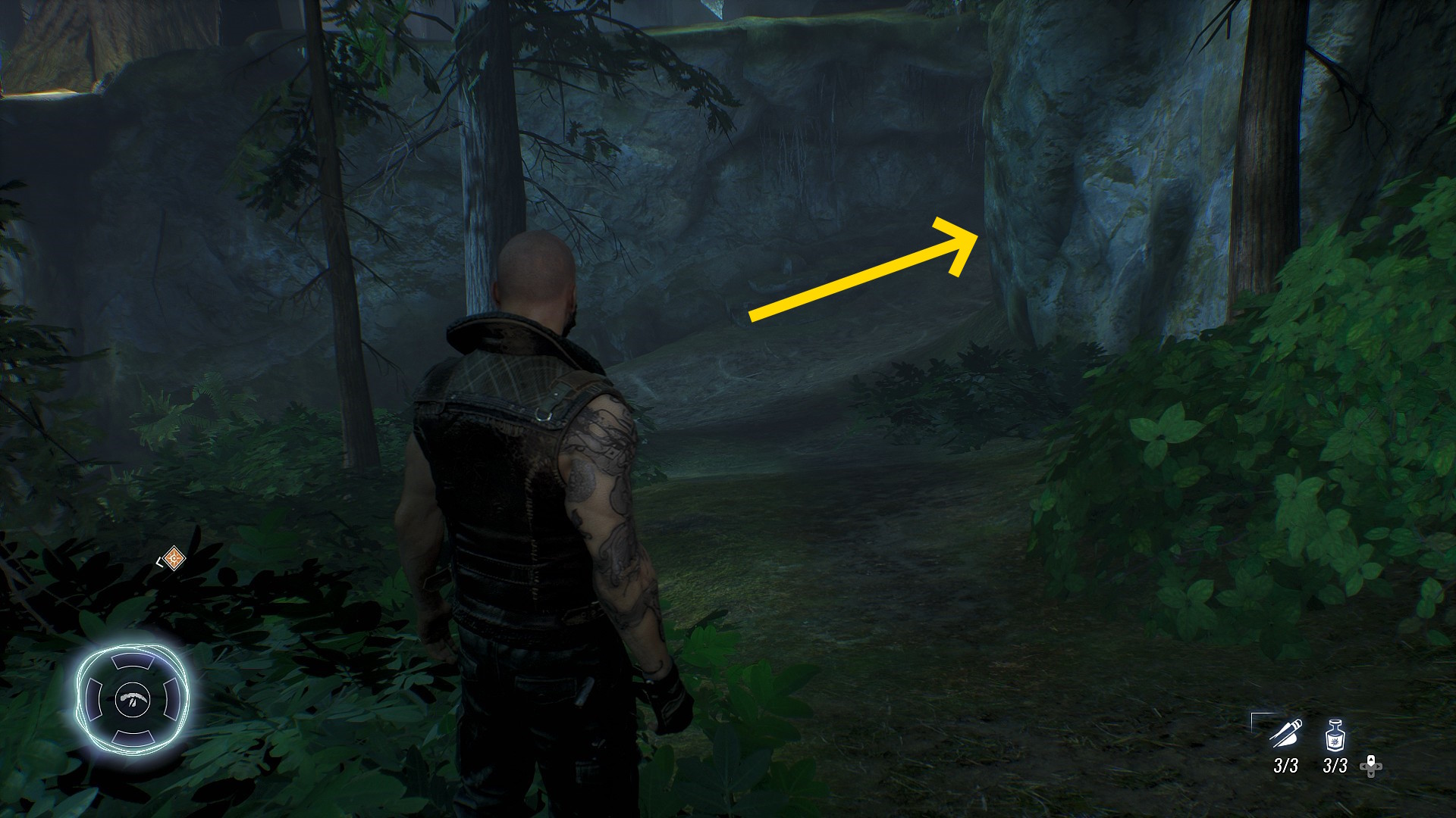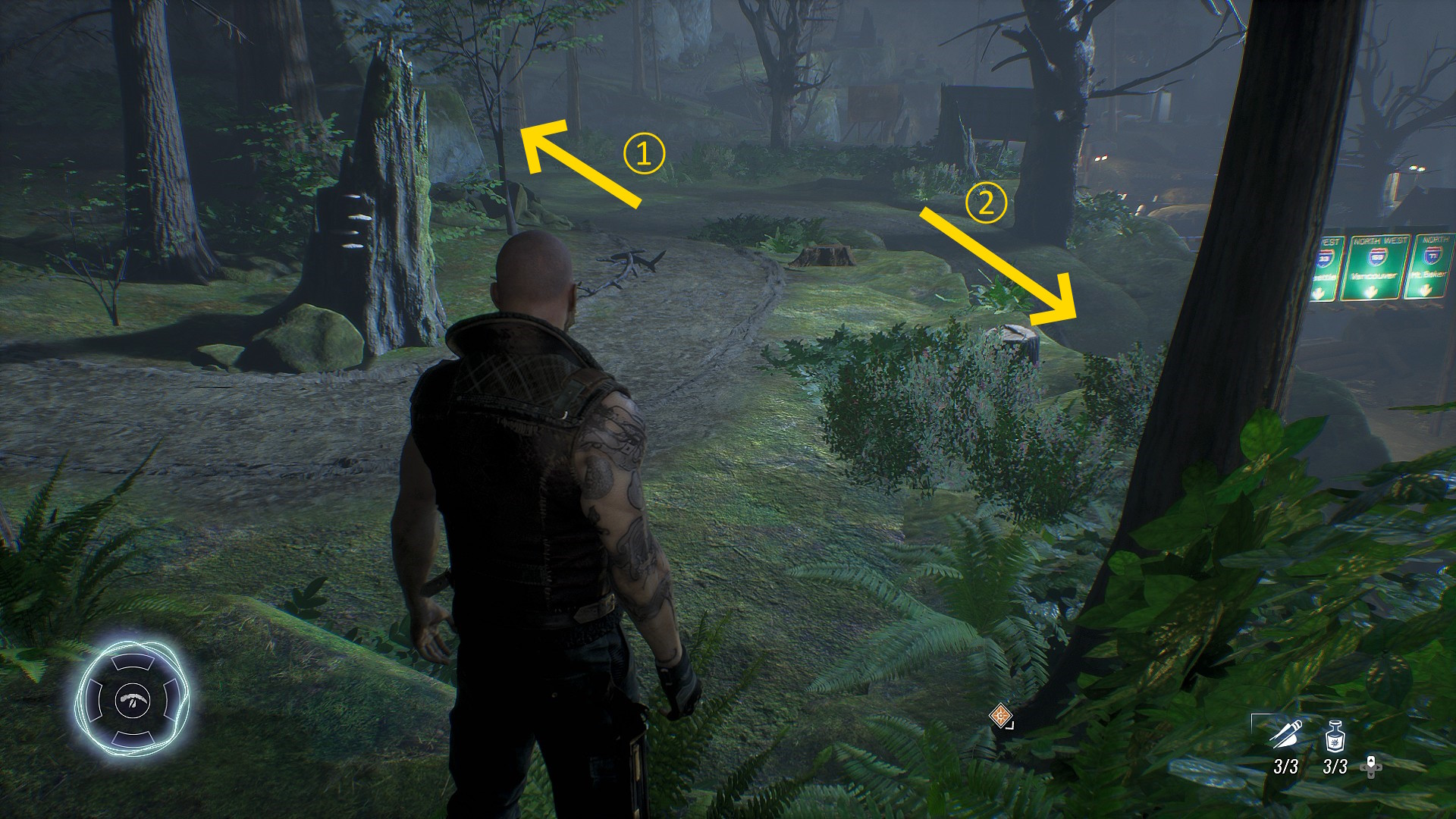 - まずは左前方へ進む(下画像①)