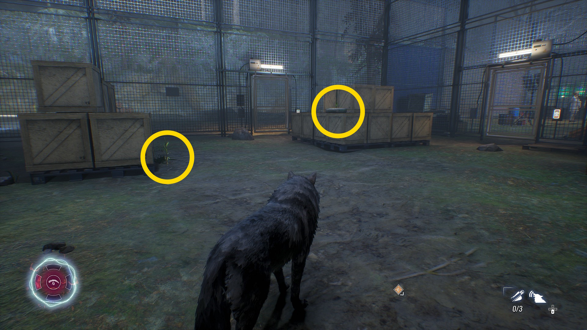 - 殲滅後、入ってきた通気ダクトの真向かいにあるフェンス状ドアを開ける