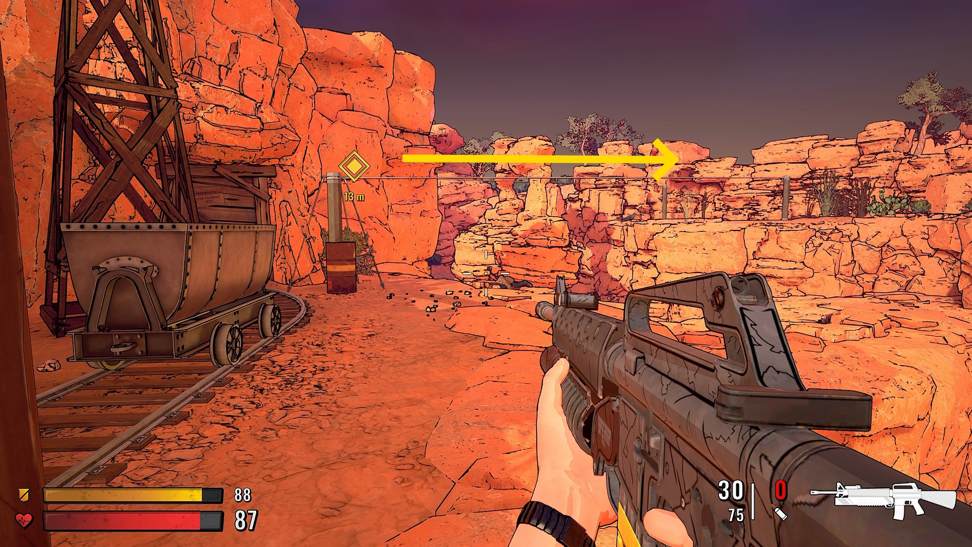 - 爆発音を聞きつけ、サーティーンの眼下に敵が2人、横倒しになったトロッコのところに敵が1人来るのですべて狙撃