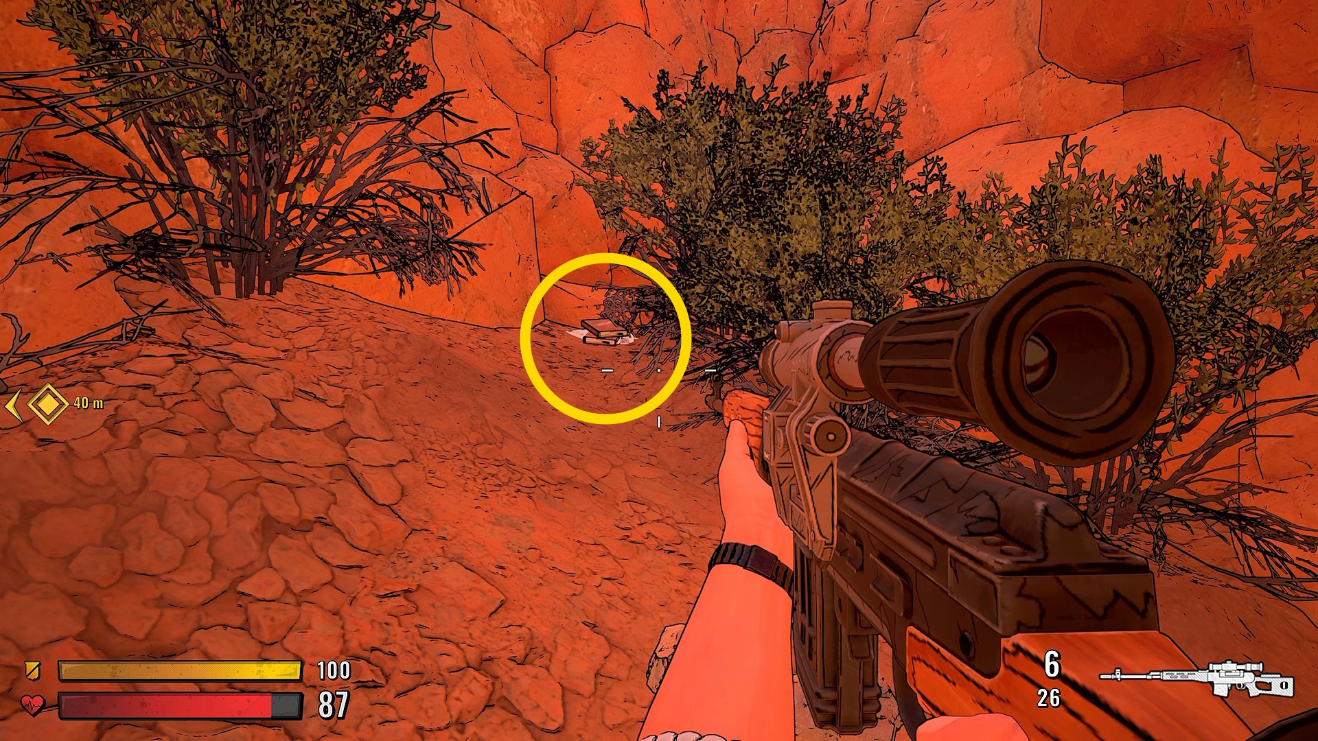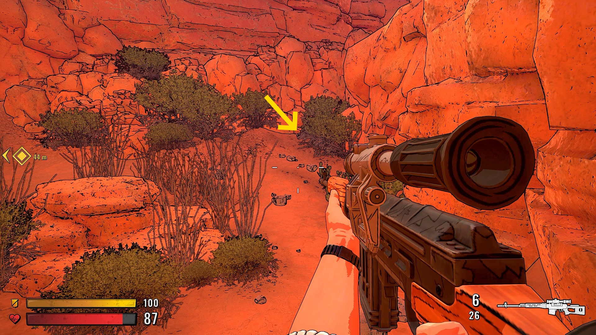 - 道の奥の崖上にスナイパーがいるので、岩などに隠れながらキル