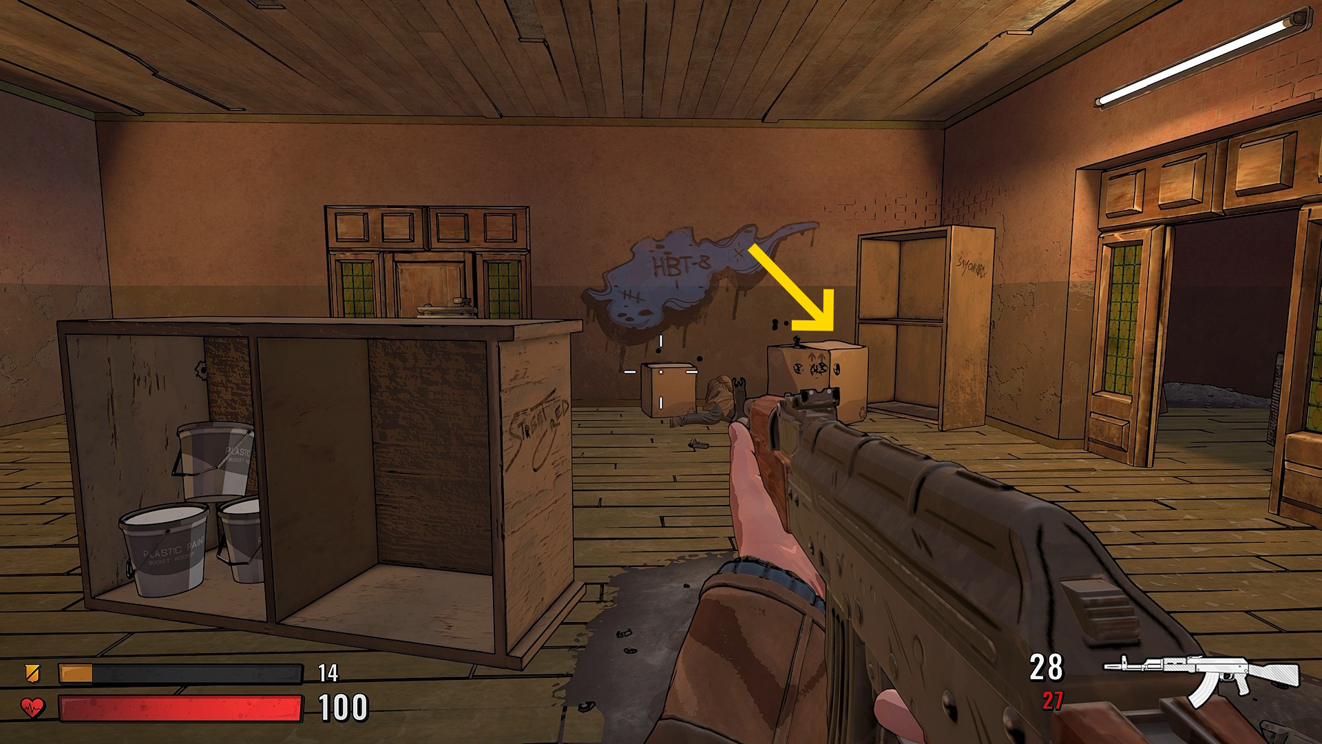 - この部屋の向こう正面の壁を見ると「 HBT-8 」という落書きがある