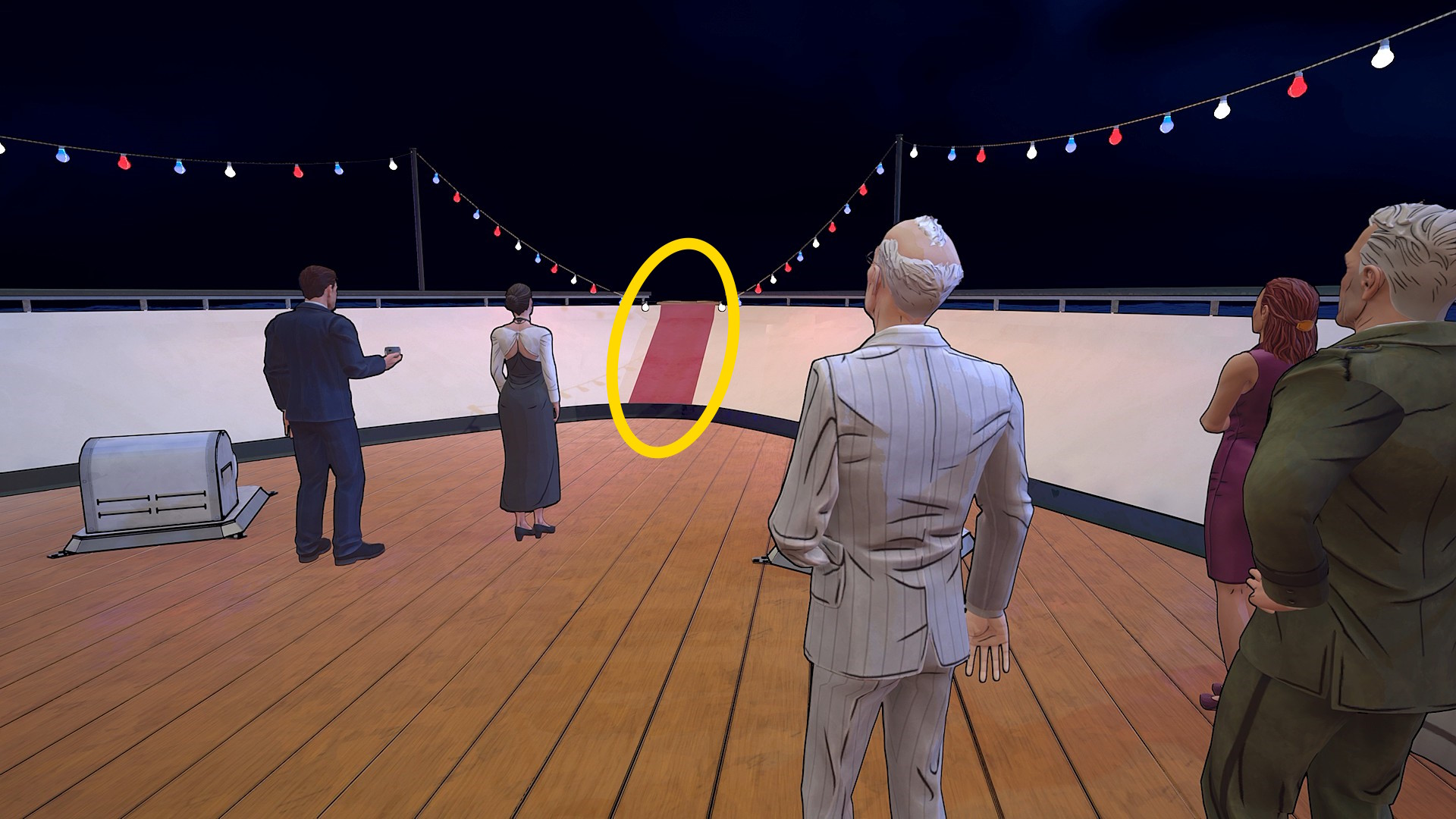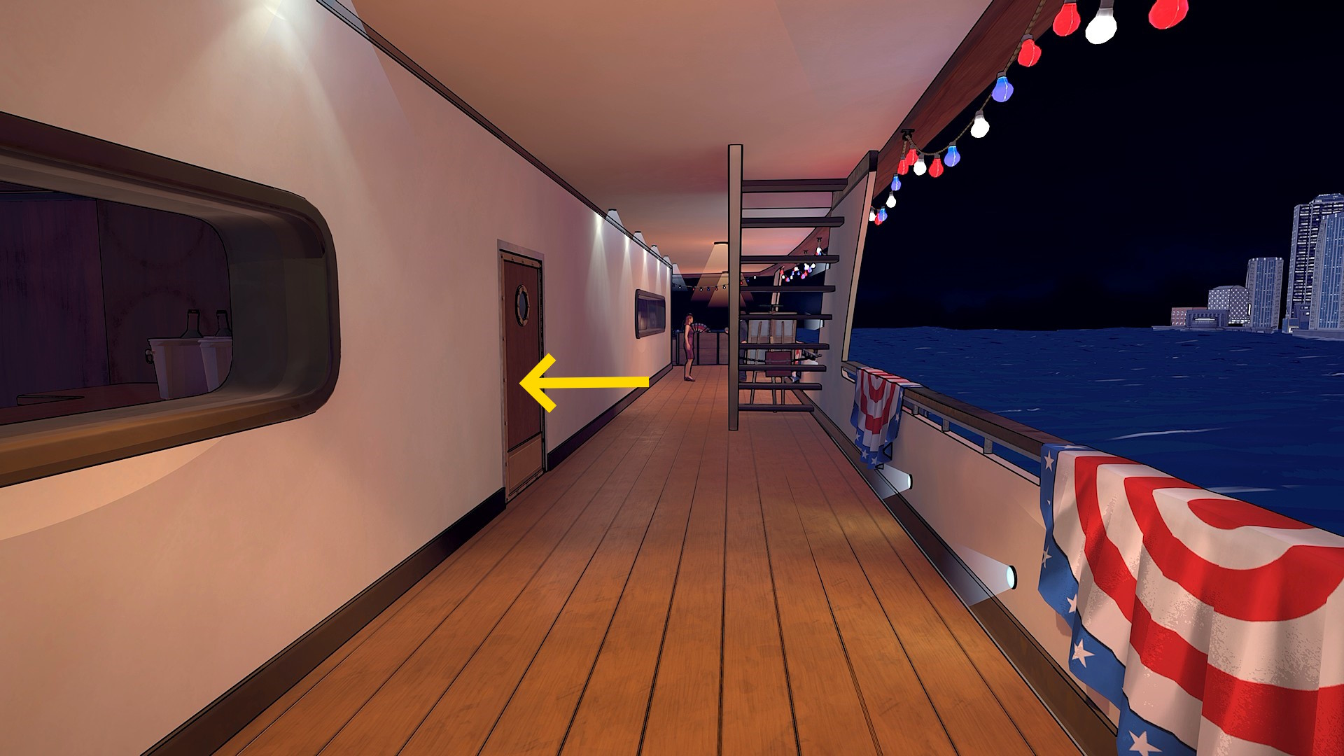- 会話中に花火が上がり、2人が船首に向かって移動するのでついていく