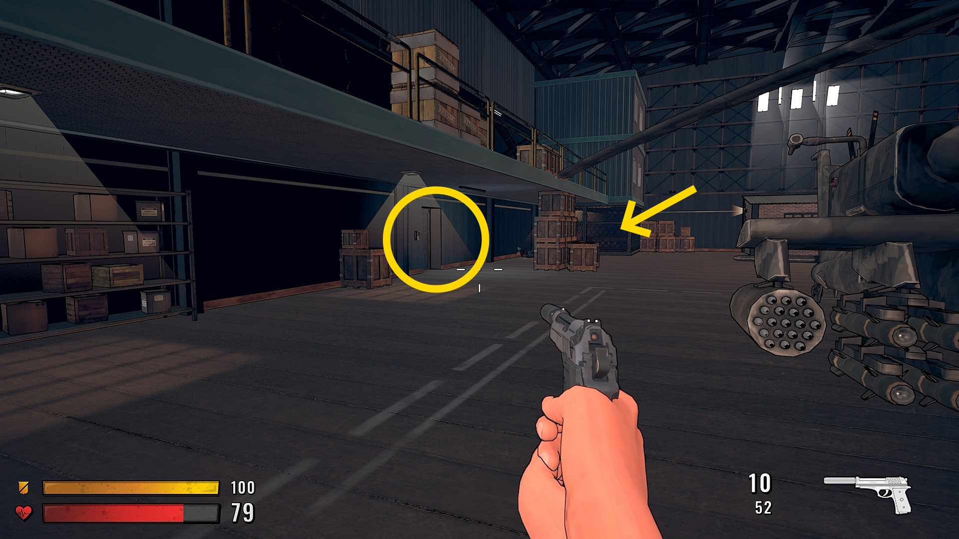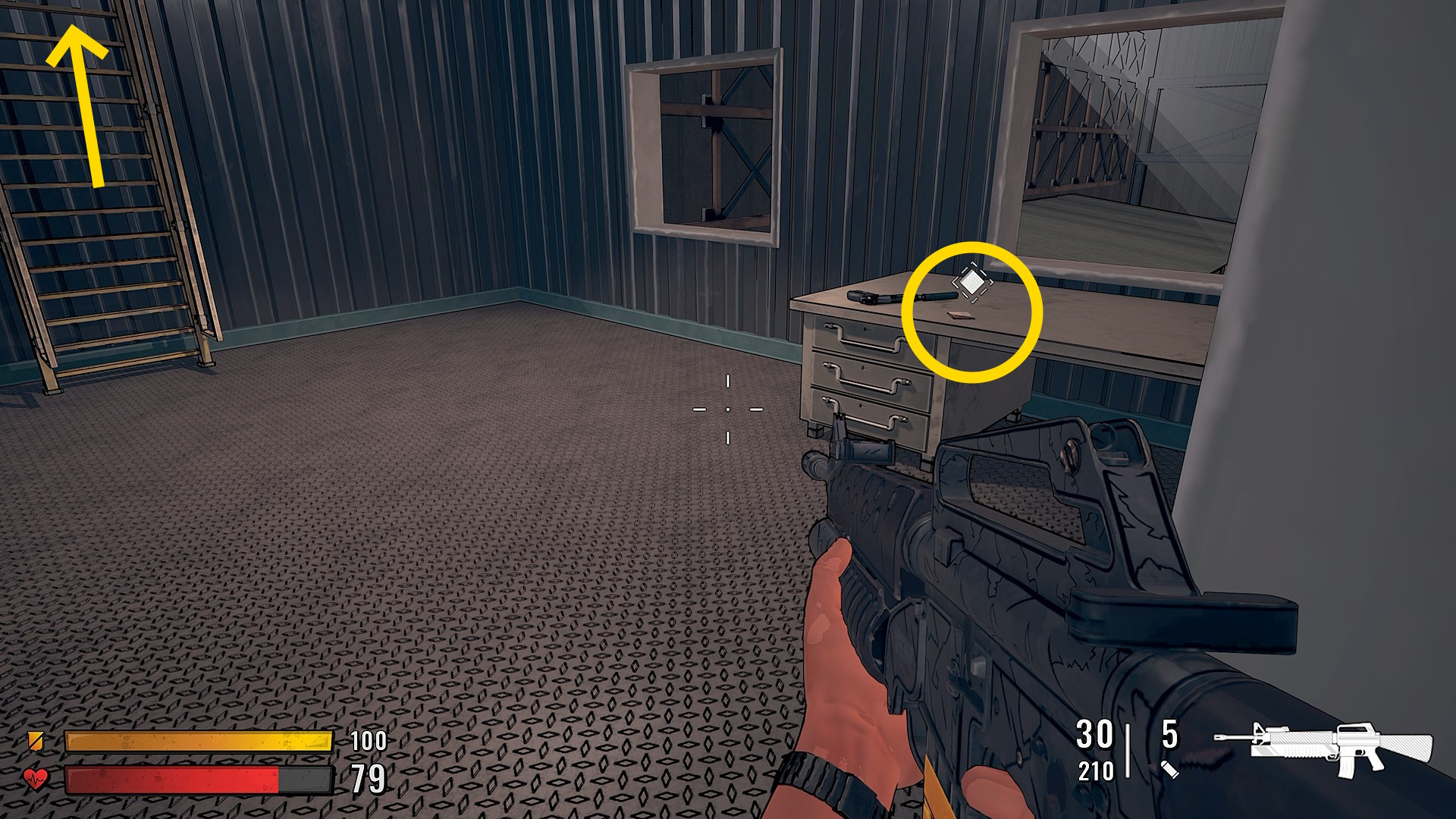 - 敵の動きが静かになったら、はしごで階下へ(なお、部屋内のロッカーを開けることで弾薬等が回収できる)