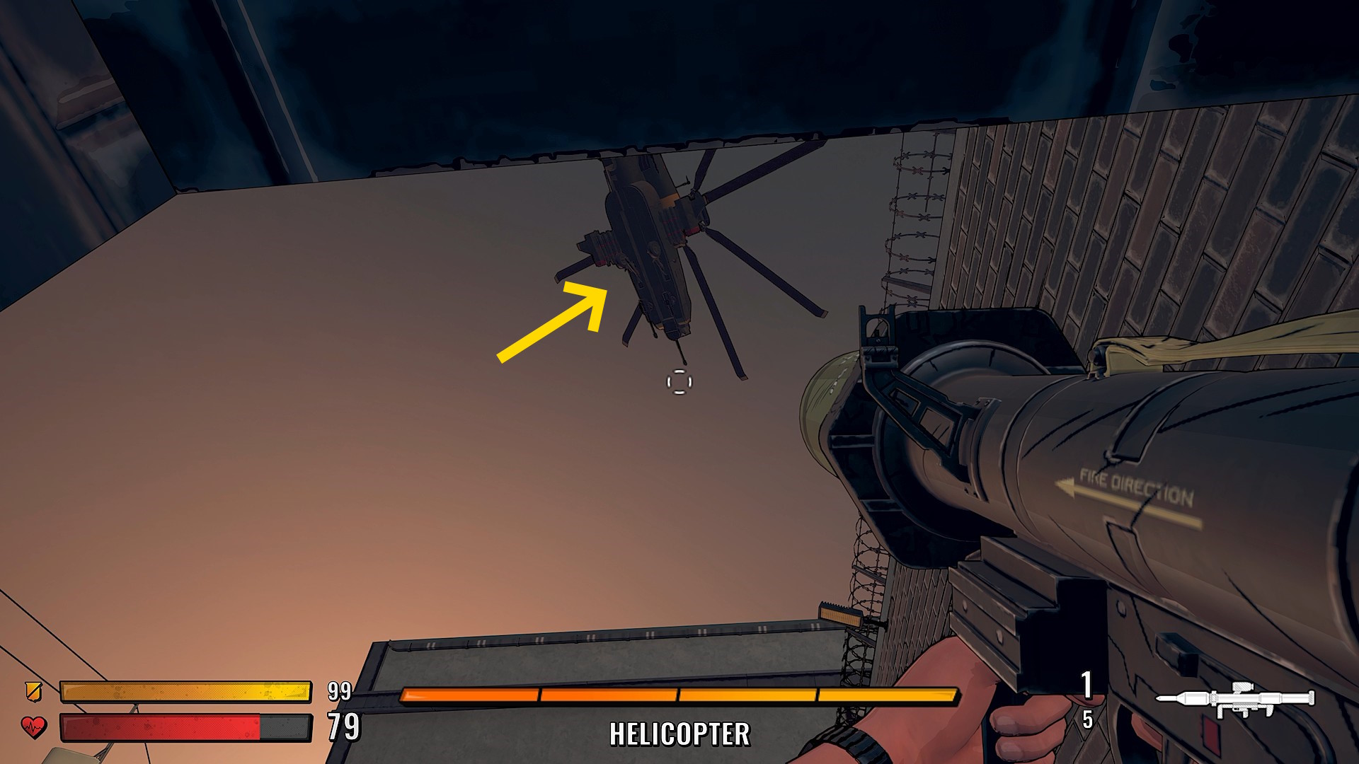 - 少し待つとヘリコプターが頭上で旋回を始める。こちらには一切攻撃してこないのでバズーカで攻撃
