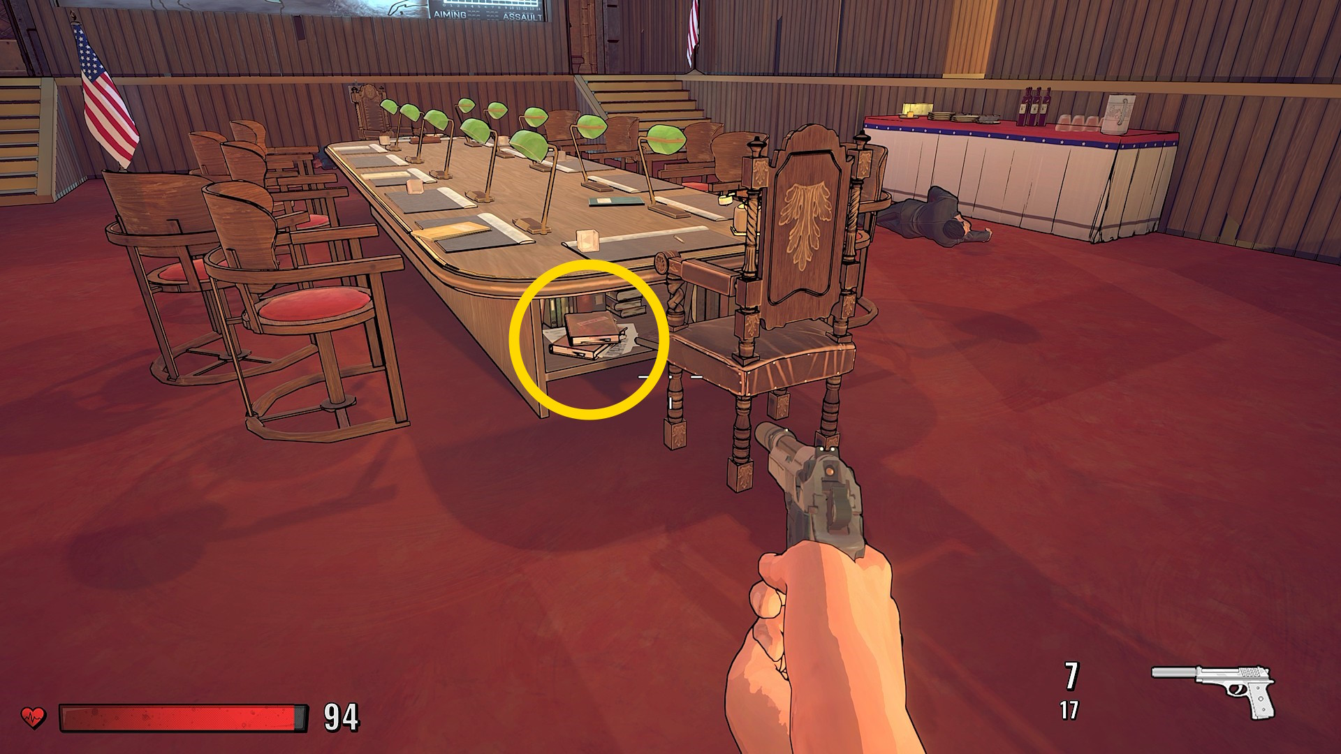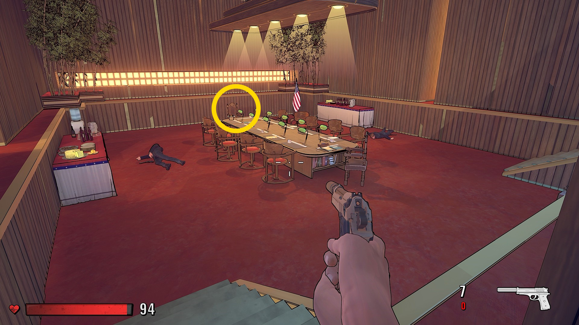 - 殲滅したら、中央のテーブルの一番奥の椅子のところへ