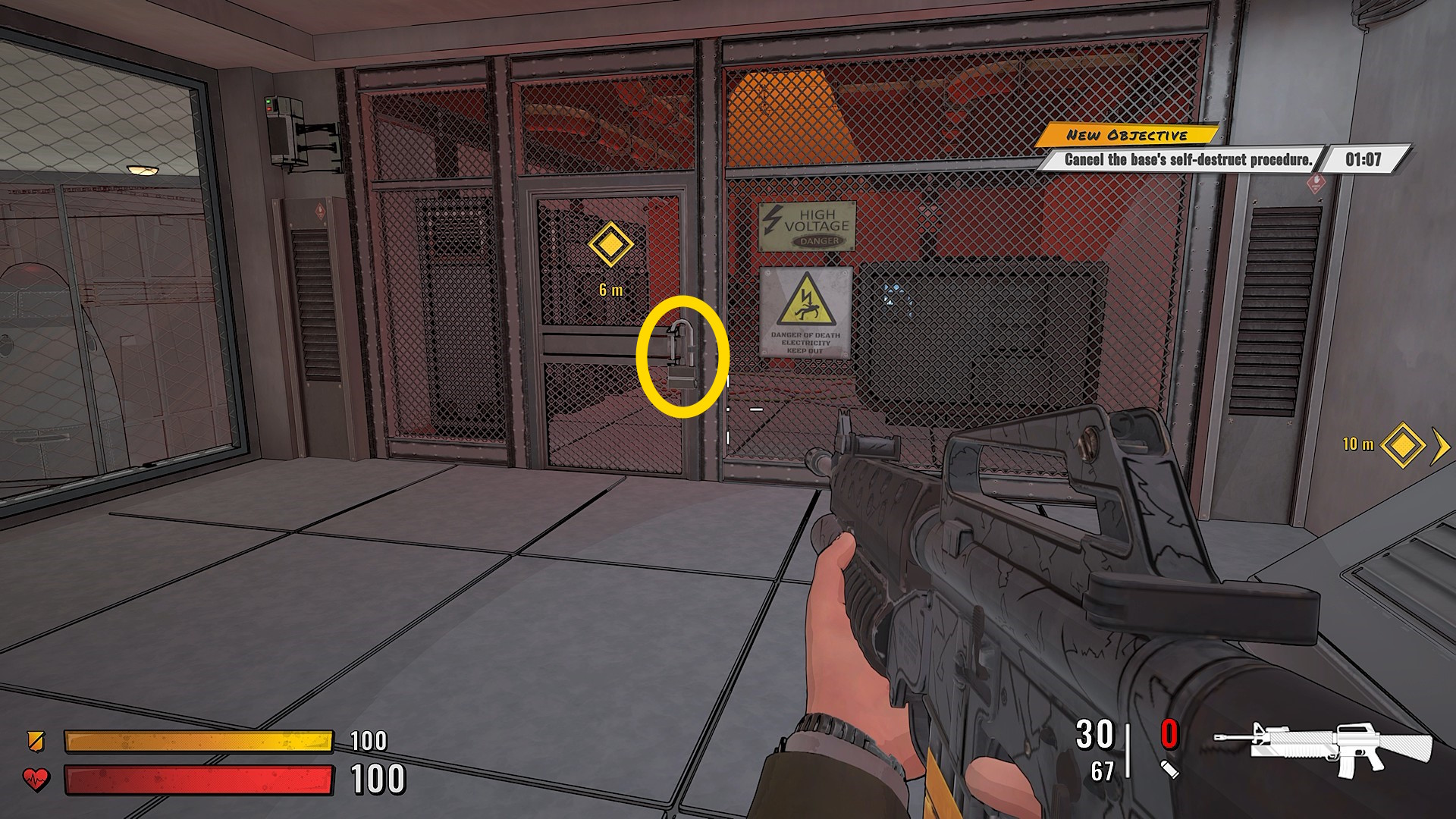 - 奥のブレーカーにマーカーが表示されているので銃撃で破壊するが、これ1台ではなく全7台を破壊する必要があるので注意(炎を触れるとダメージ受けるのも注意)